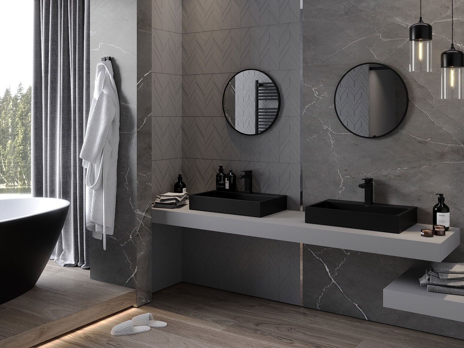 Šis veidrodis pagamintas iš aukščiausios kokybės žaliavų, atsparių išoriniams veiksniams, pavyzdžiui, drėgmei ir garams, todėl puikiai tinka tokioms patalpoms kaip vonios kambarys. Naudojant aukštos kokybės medžiagas veidrodis yra patvarus ir atsparus įbrėžimams.