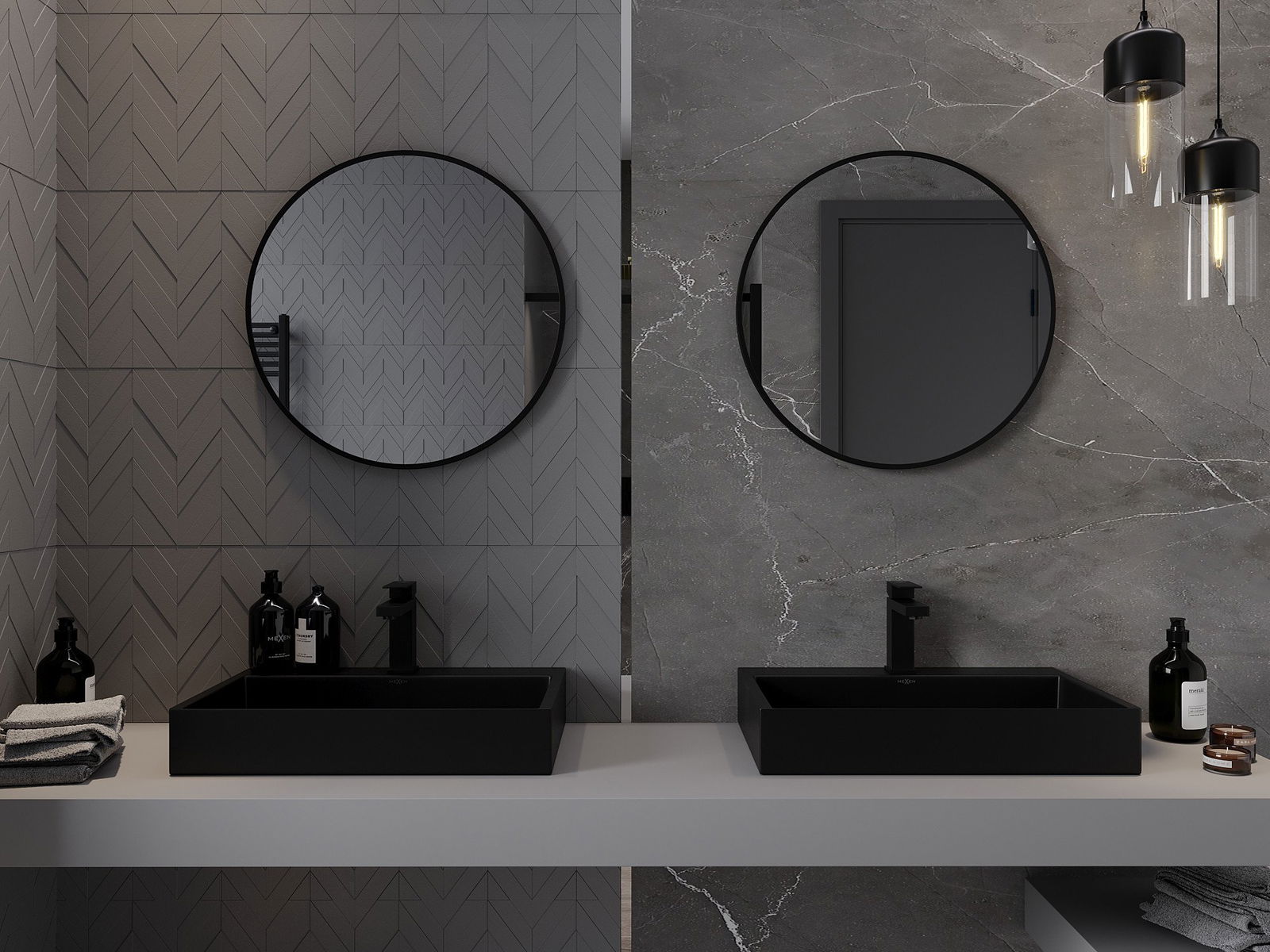 Mexen Loft apvalus vonios kambario veidrodis 60 cm, juodas rėmas - 9850-060-060-000-70