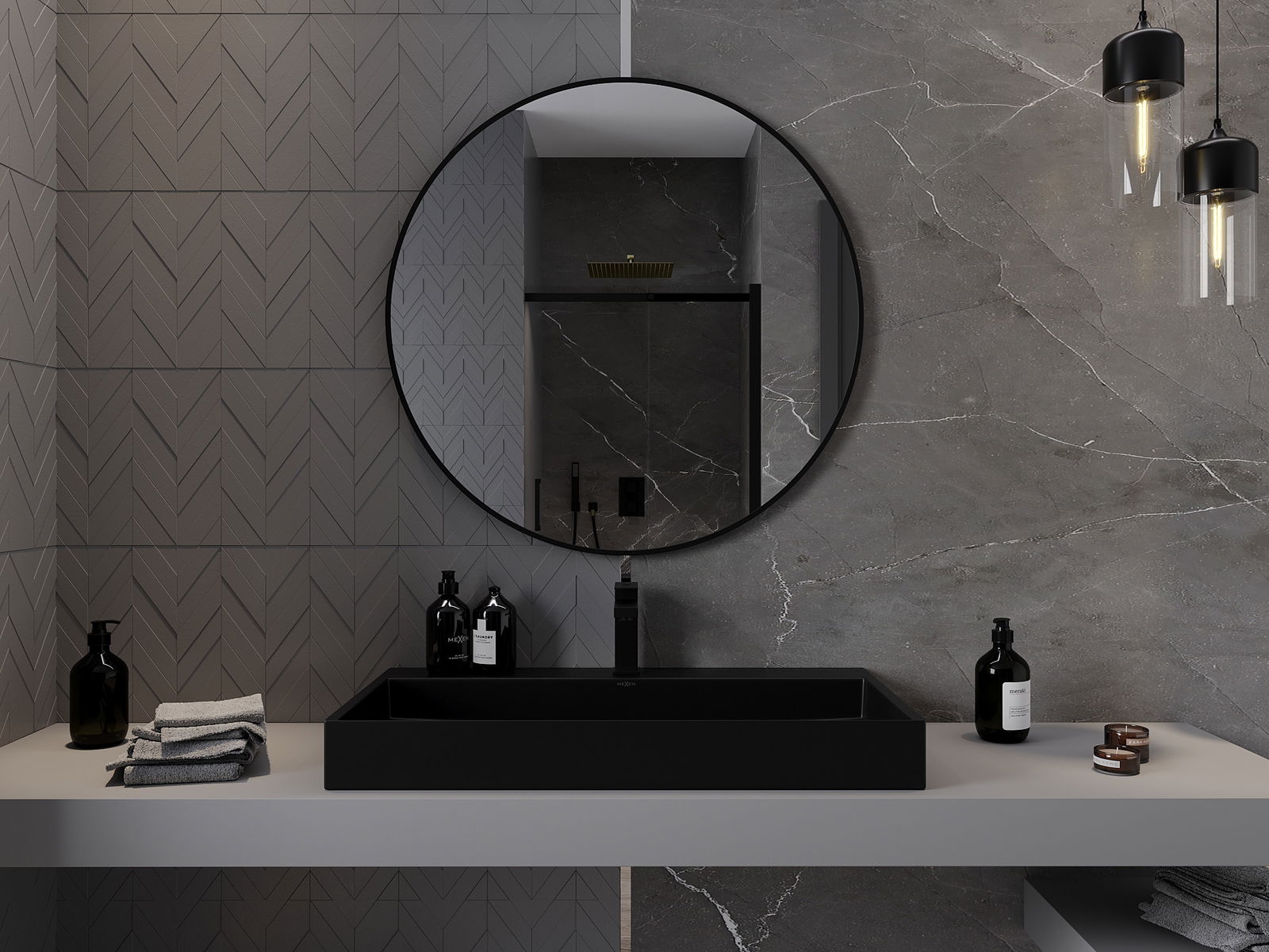 Mexen Loft apvalus vonios kambario veidrodis 95 cm, juodas rėmas - 9850-095-095-000-70