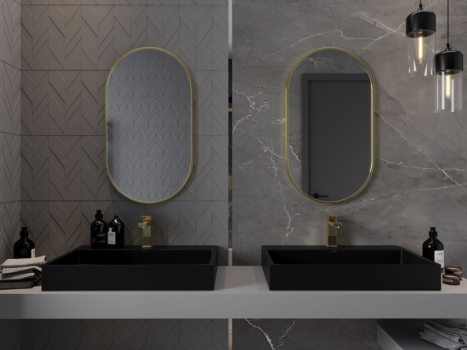 Mexen Loft vonios veidrodis ovalus 80 x 45 cm, rėmas auksinis - 9851-080-045-000-50