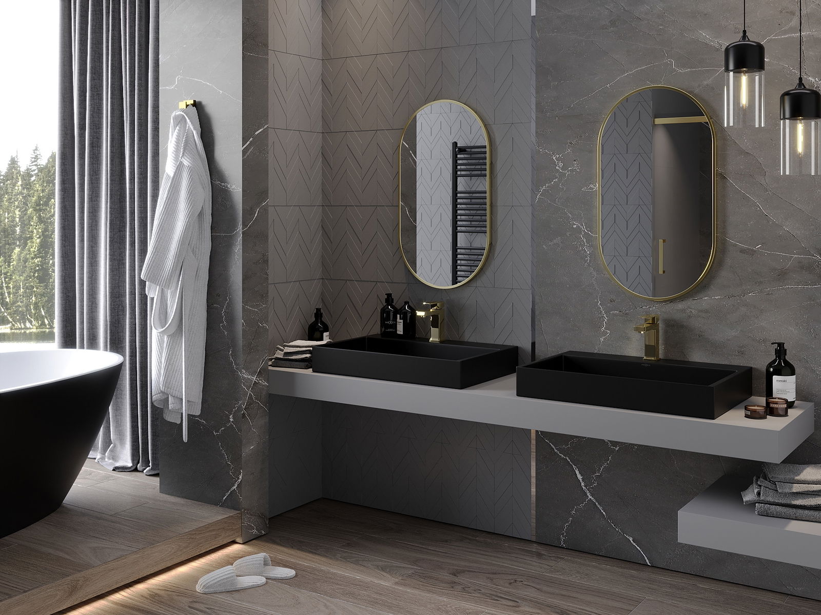 Šis veidrodis pagamintas iš aukščiausios kokybės žaliavų, atsparių išoriniams veiksniams, pavyzdžiui, drėgmei ir garams, todėl puikiai tinka tokioms patalpoms kaip vonios kambarys. Naudojant aukštos kokybės medžiagas veidrodis yra patvarus ir atsparus įbrėžimams.