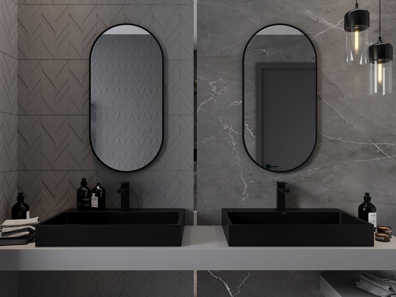 Mexen Loft vonios kambario veidrodis ovalus 90 x 45 cm, juodas rėmas - 9851-090-045-000-70