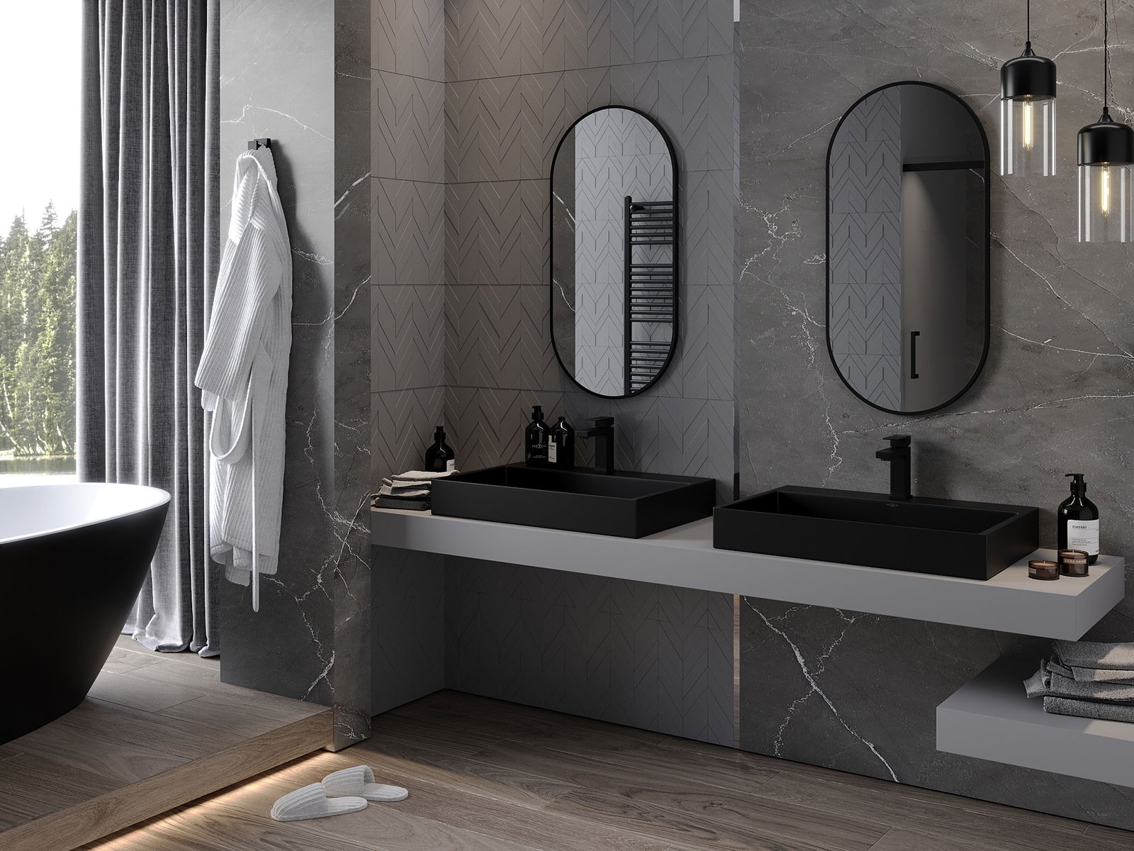 Šis veidrodis pagamintas iš aukščiausios kokybės žaliavų, atsparių išoriniams veiksniams, pavyzdžiui, drėgmei ir garams, todėl puikiai tinka tokioms patalpoms kaip vonios kambarys. Naudojant aukštos kokybės medžiagas veidrodis yra patvarus ir atsparus įbrėžimams.