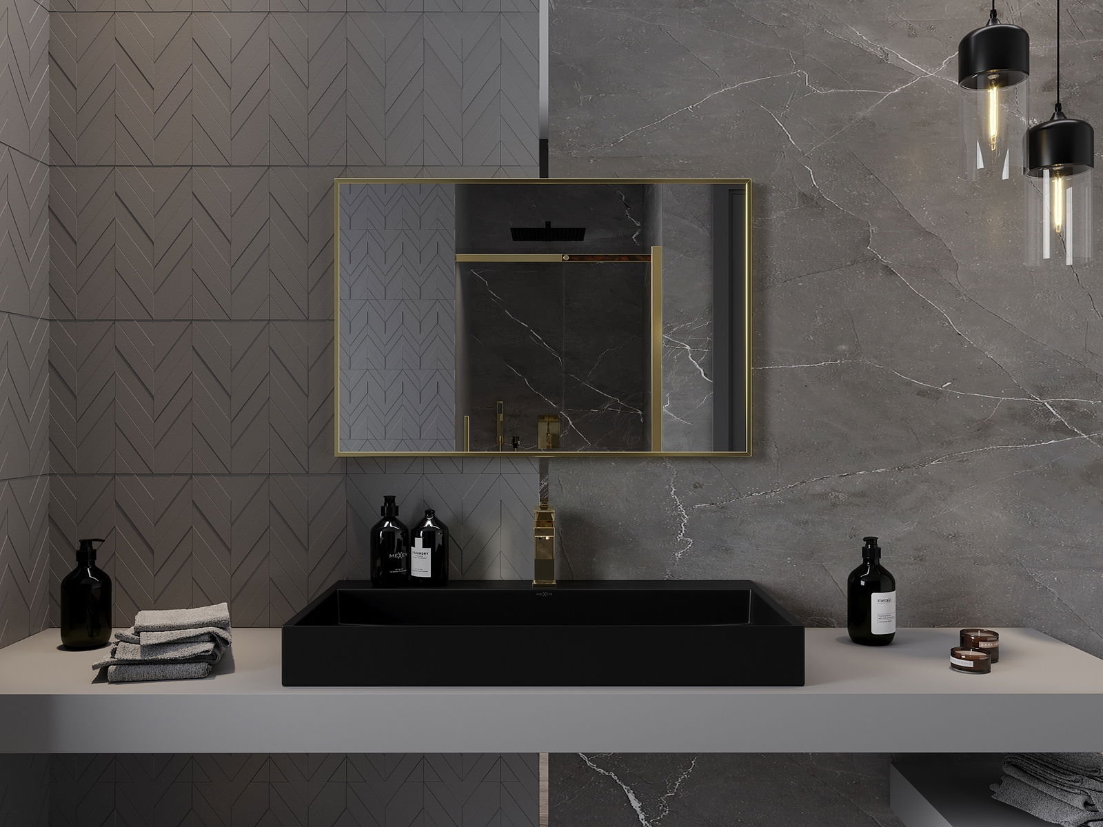 Mexen Loft stačiakampis vonios veidrodis 90 x 60 cm, auksinis rėmas - 9852-090-060-000-50