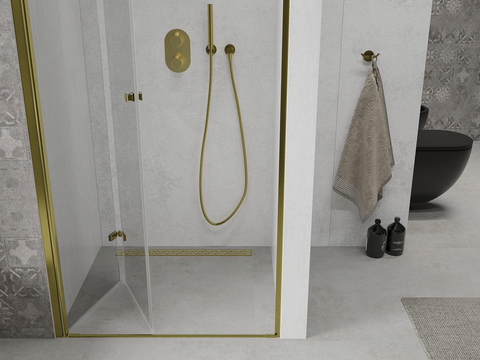 Mexen Lima sulankstomos dušo durys 80 cm, skaidrios, auksinės - 856-080-000-50-00