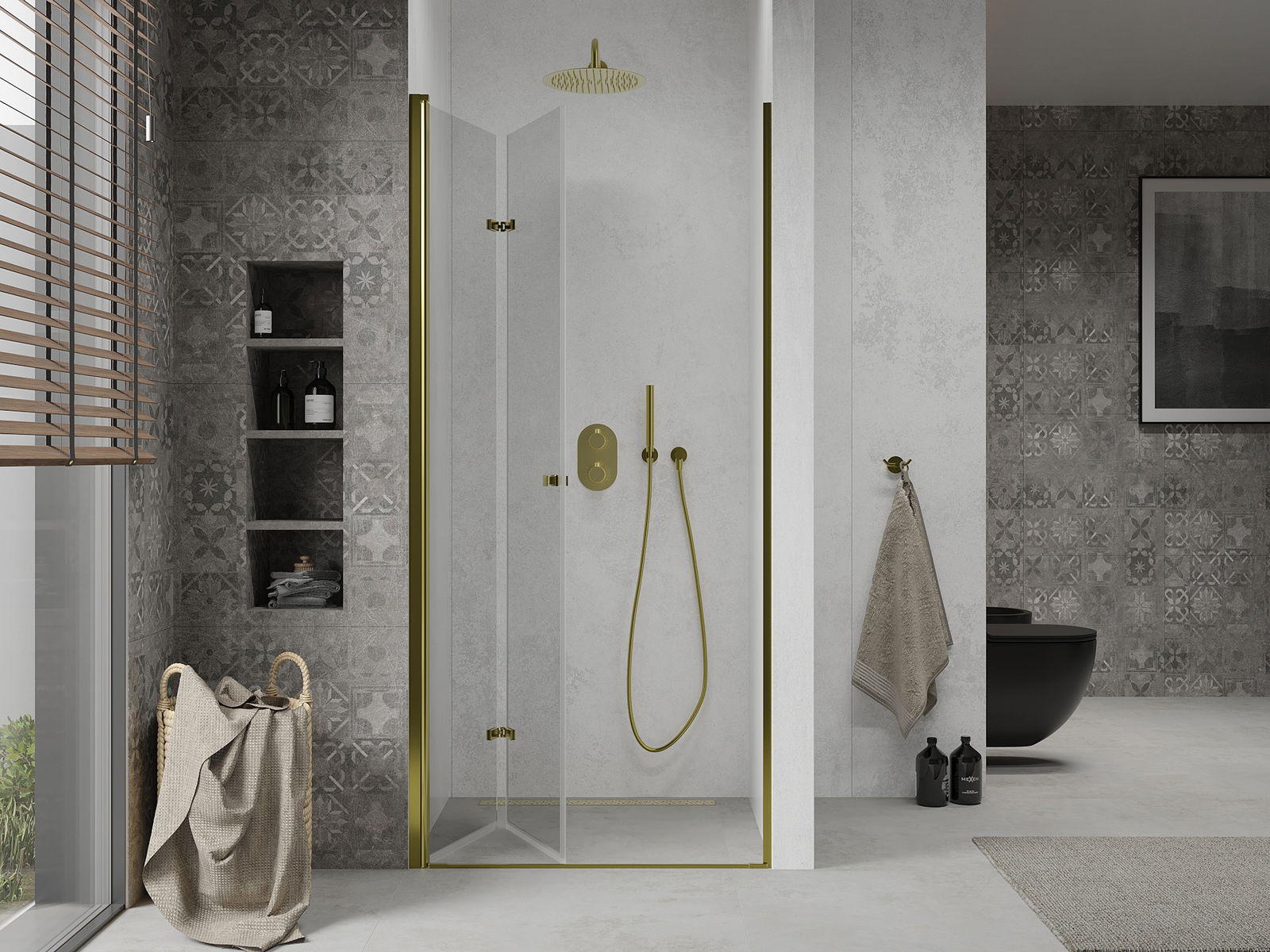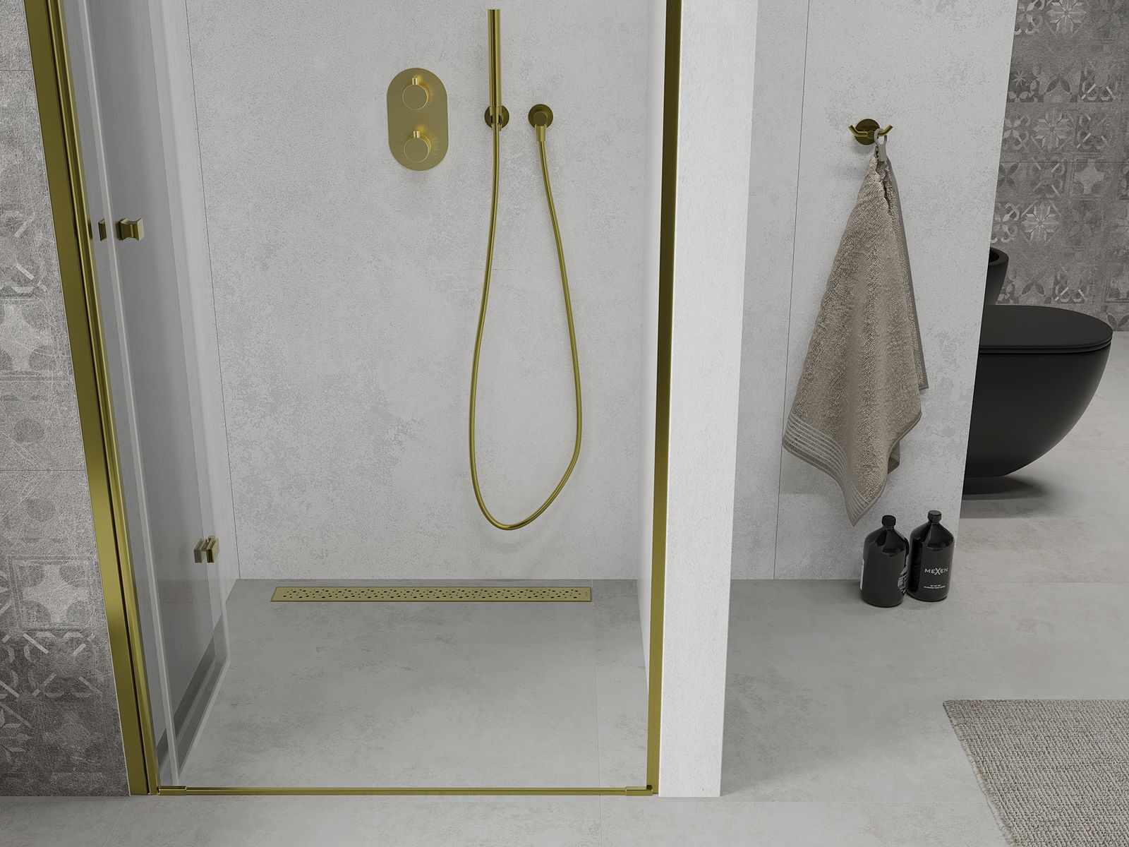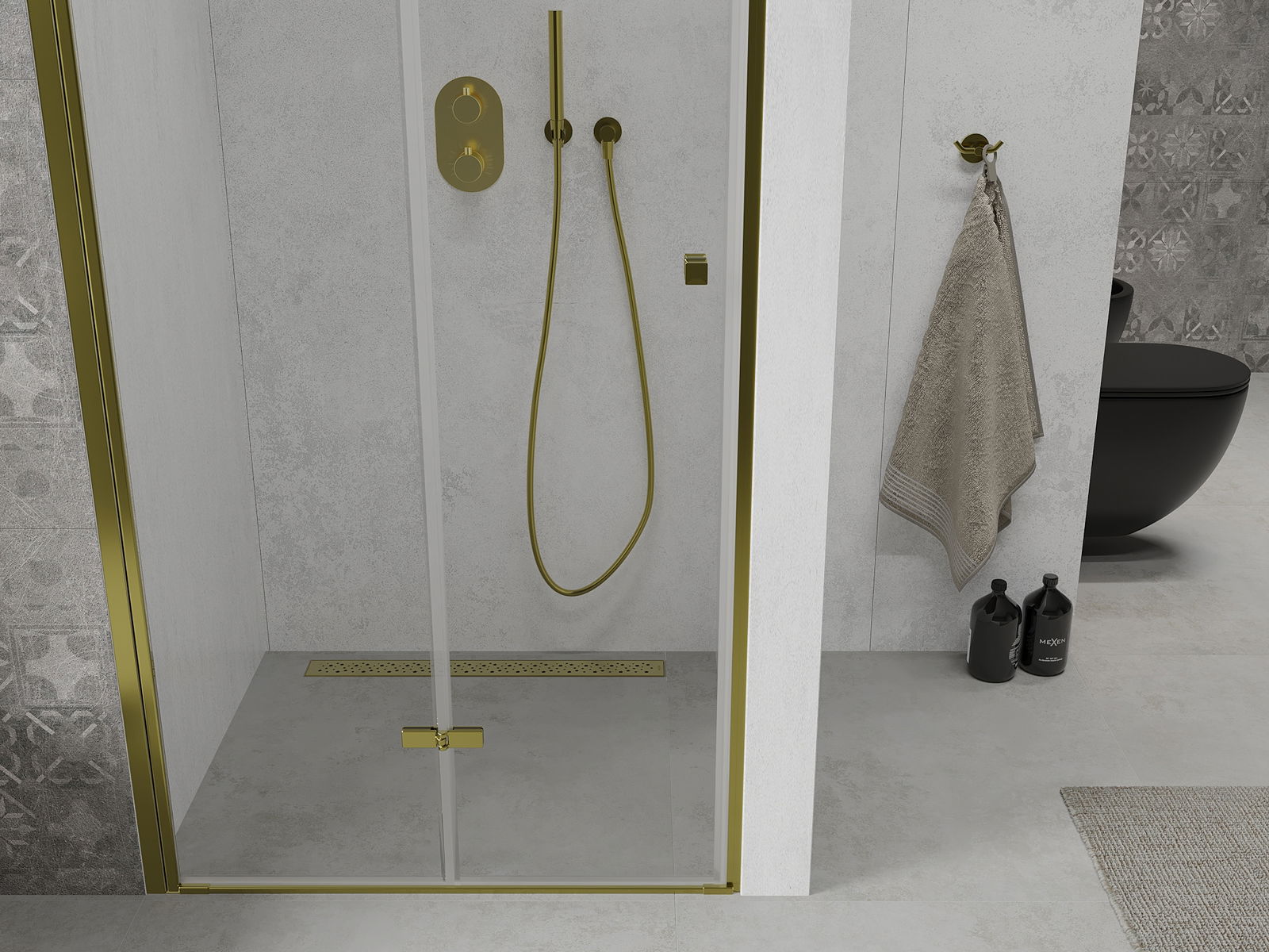 Mexen Lima sulankstomas dušo durys 90 cm, skaidrios, auksinės - 856-090-000-50-00