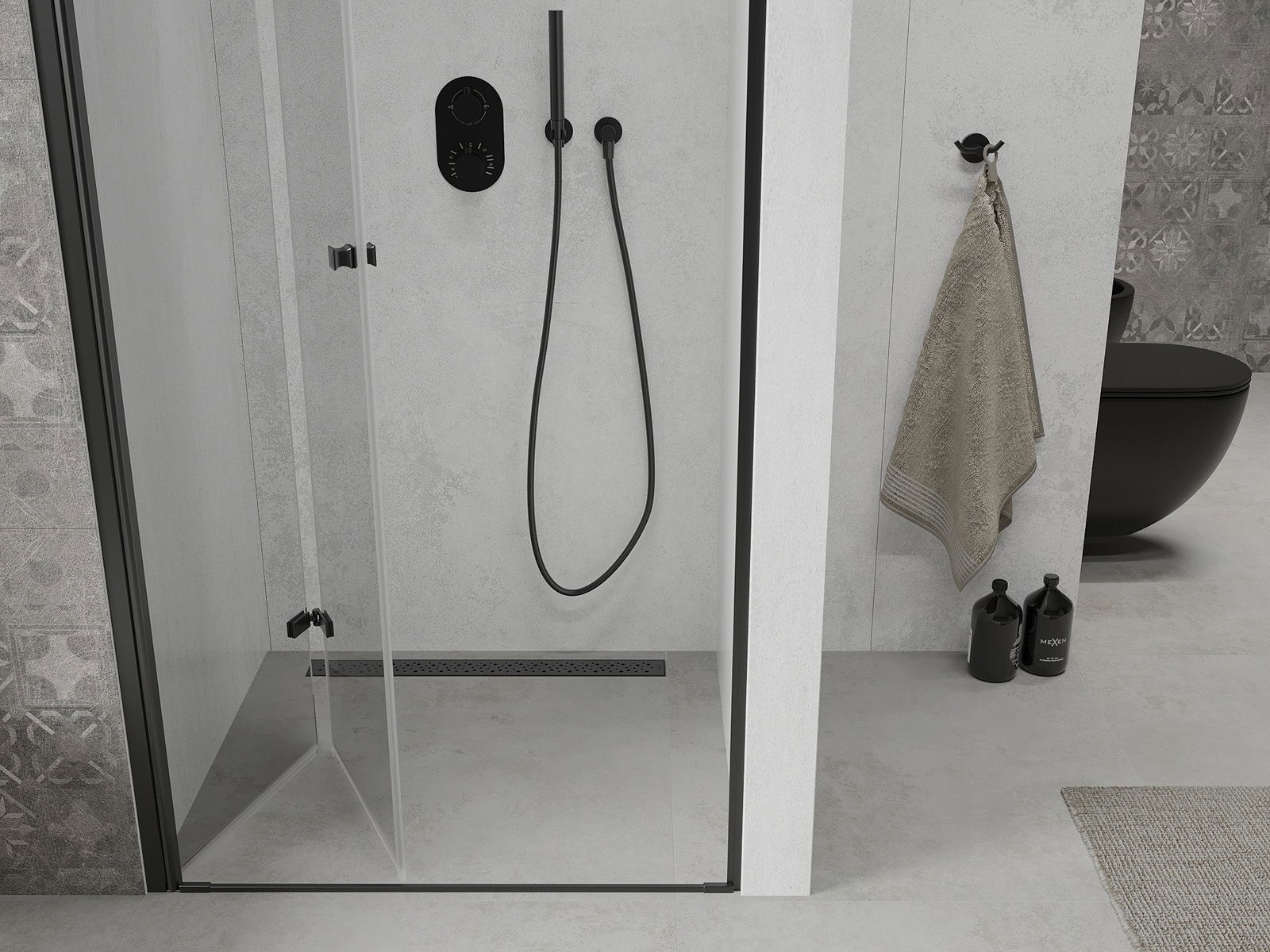 Mexen Lima sulankstomos dušo durys 90 cm, permatomos, juodos - 856-090-000-70-00