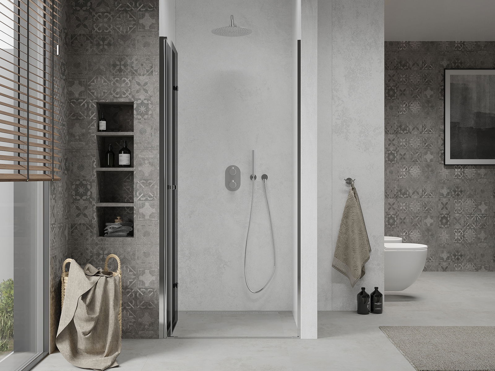 Galimybė sulenkti duris, tiek į išorę, tiek į vidų, leidžia gauti daugiau erdvės nenaudojant dušo. Tai yra idealus sprendimas mažesnėms vonios kambariams, maksimaliai išnaudojantis turimą plotą.