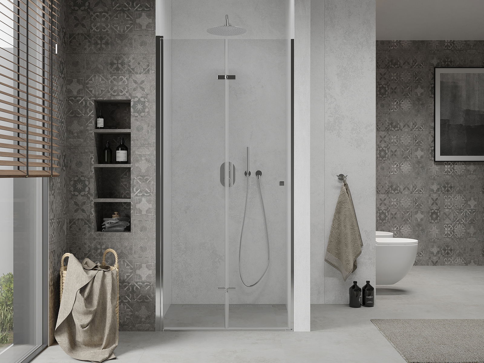 Galimybė sulenkti duris, tiek į išorę, tiek į vidų, leidžia gauti daugiau erdvės nenaudojant dušo. Tai yra idealus sprendimas mažesnėms vonios kambariams, maksimaliai išnaudojantis turimą plotą.
