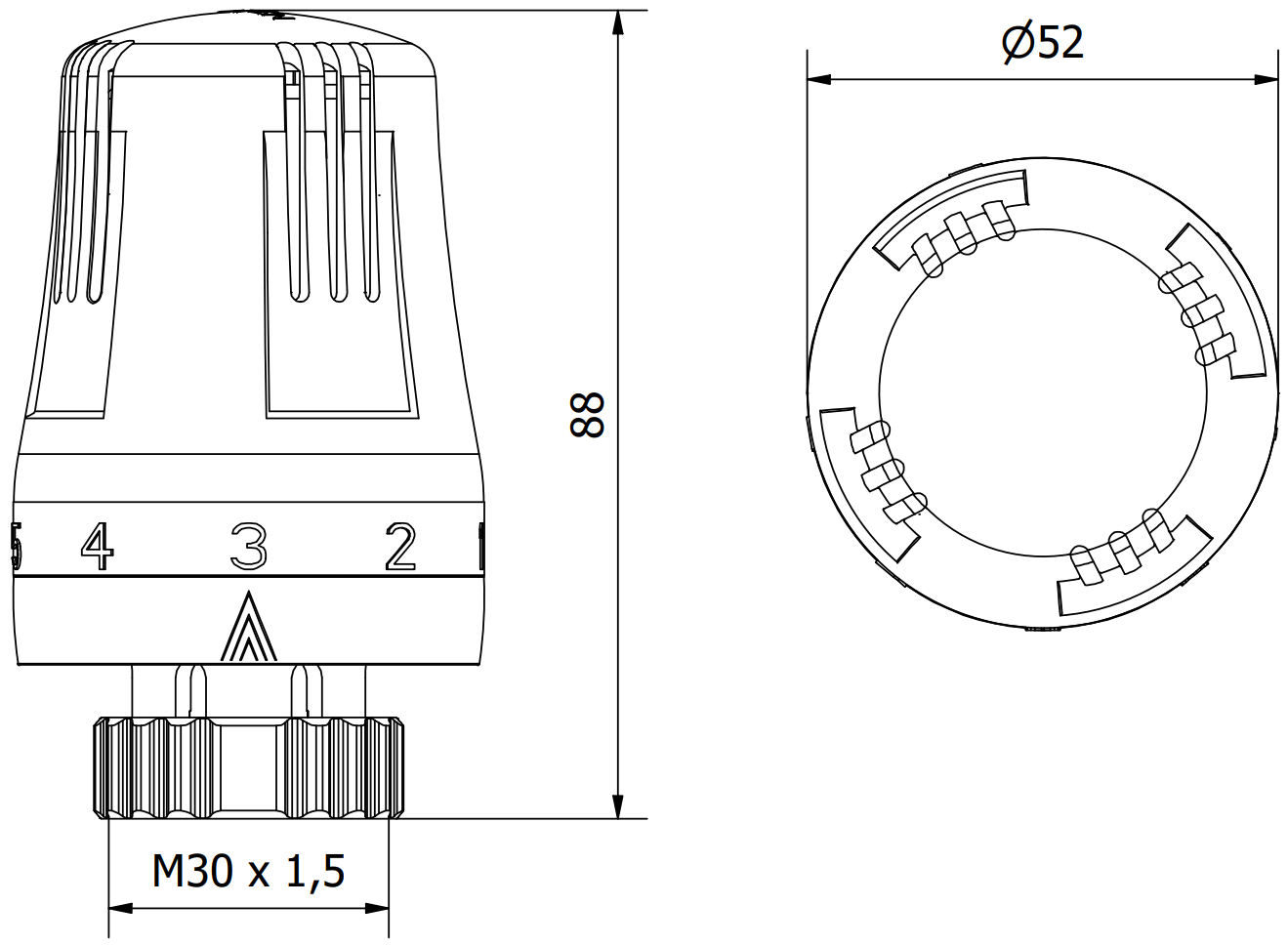 Tai yra standartinis sriegio dydis, naudojamas daugelyje termostatinių galvučių, ypač įrenginiuose, naudojamuose šildymo sistemose. Simbolis M30 reiškia, kad sriegiavimo išorinis skersmuo yra 30 mm, o 1,5 mm - sriegio žingsnis yra 1,5 mm.