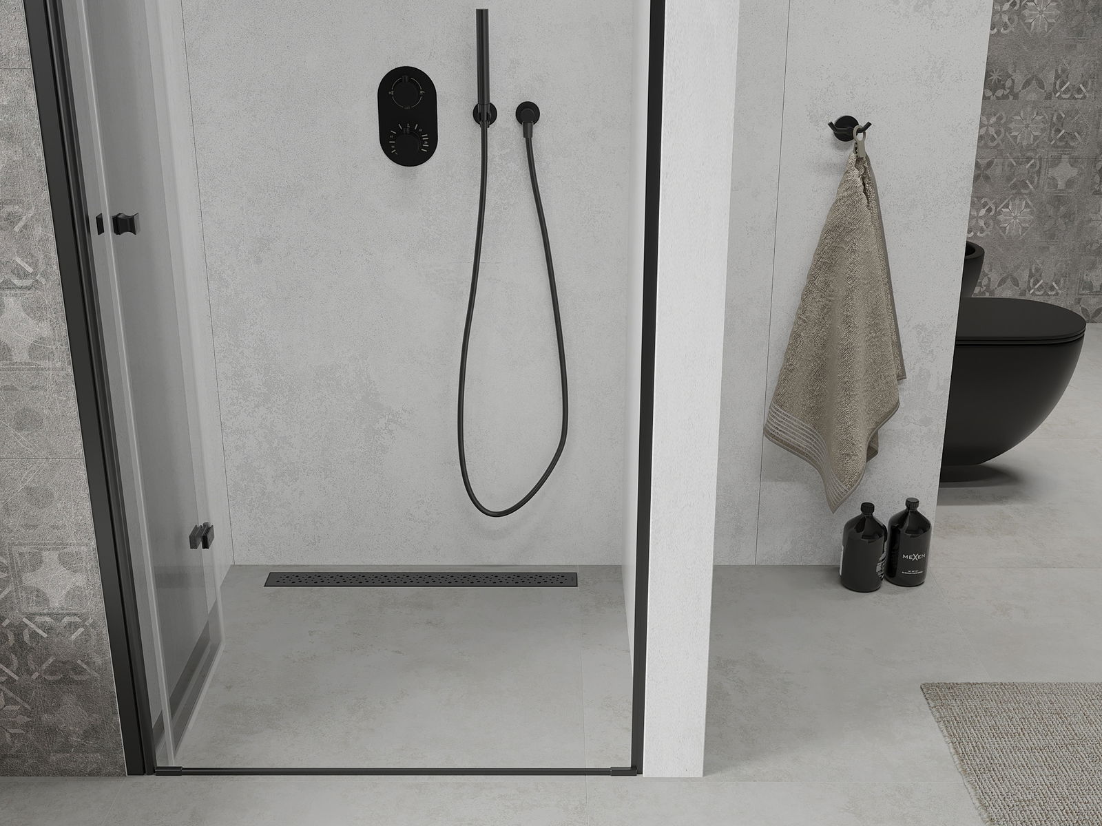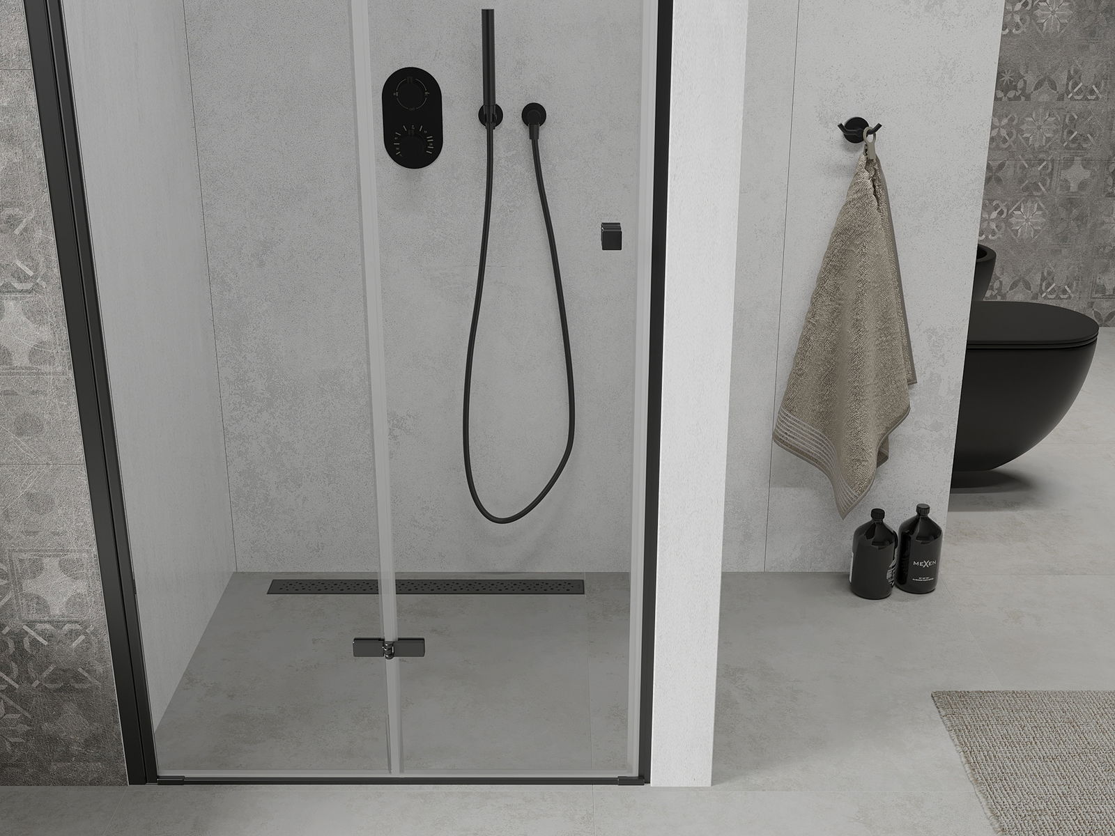 Mexen Lima sulankstomos dušo durys 120 cm, skaidrios, juodos - 856-120-000-70-00