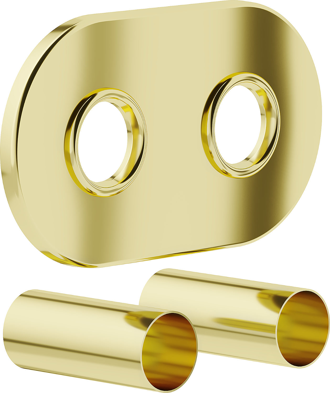 Rinkiny su nerūdijančio plieno rozetė ir žalvarine įvore yra dviejų medžiagų su ypatingomis savybėmis derinys. Nerūdijantis plienas užtikrina estetinę apdailą ir atsparumą korozijai, o žalvaris garantuoja patvarumą ir stiprumą sujungiant šildymo sistemos elementus.