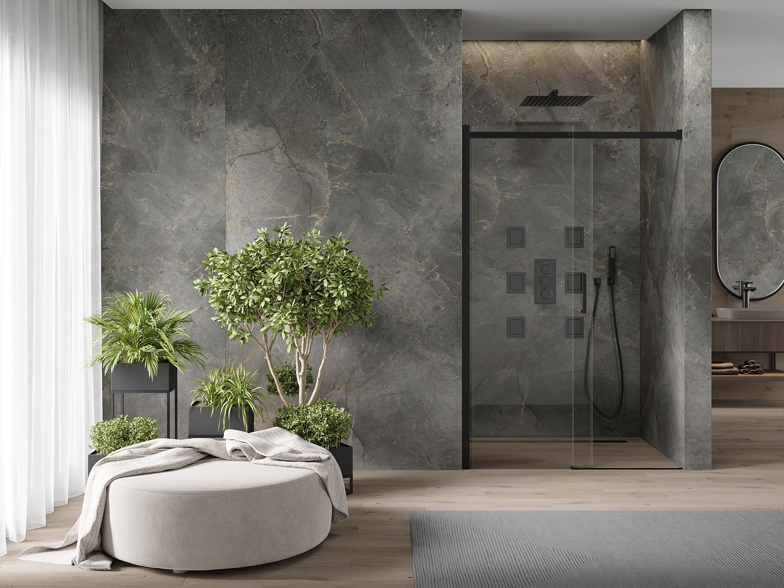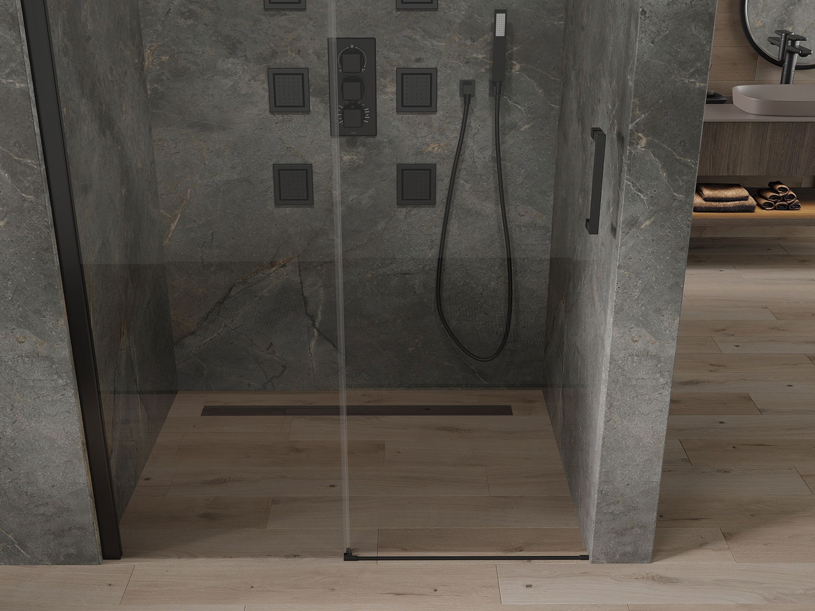 Priklausomai nuo jūsų poreikių, produktą galima pritvirtinti prie dušo dėklo ir tiesiai ant grindų. Universalus montavimo metodas leidžia pritaikyti produktą prie įvairių tipų vonios kambarių ir sukonfigūruoti vietos.