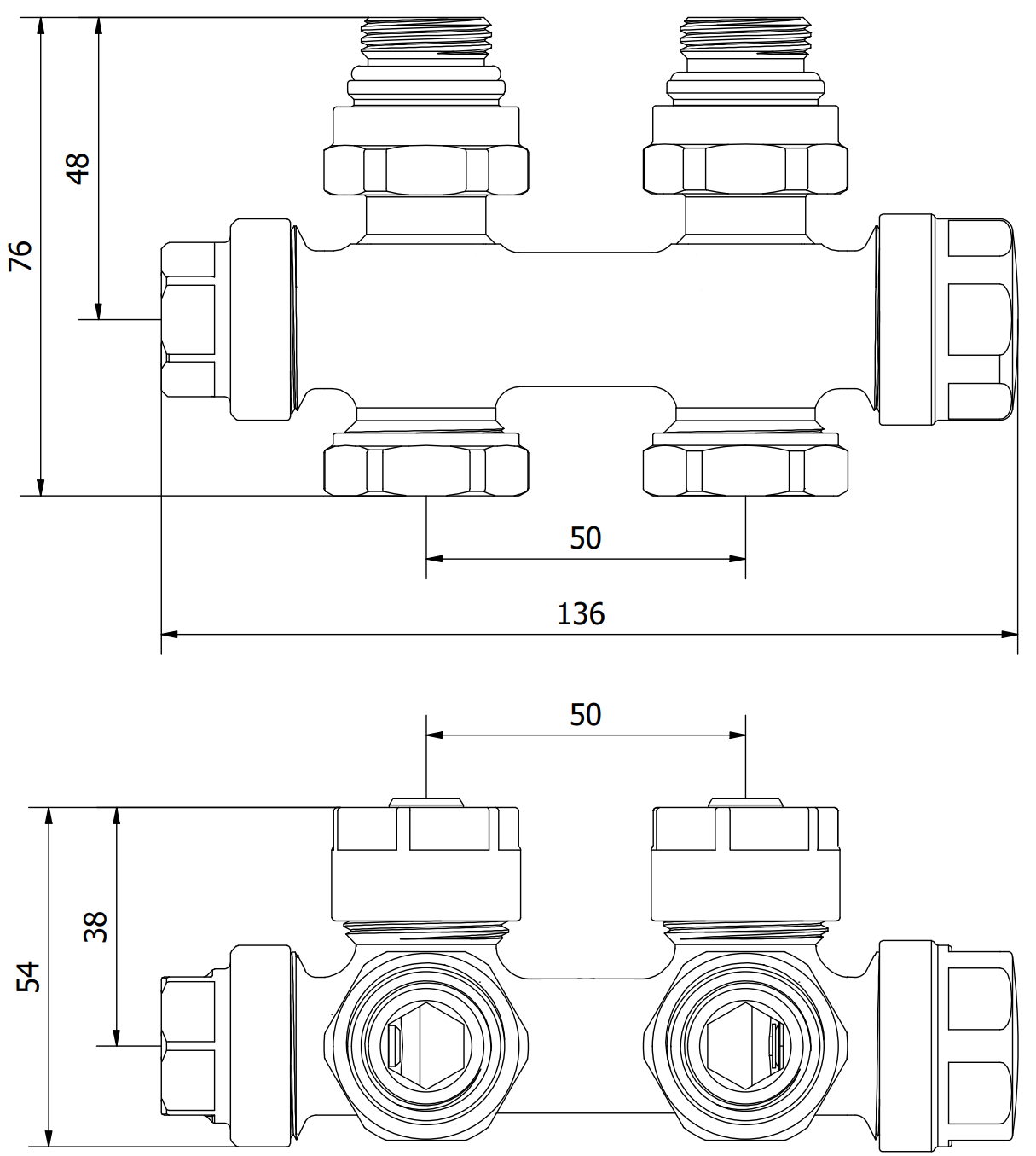 Universalus tiekimo ir išjungimo vožtuvas kampiniams ir tiesiems jungimams, nesvarbu, ar jungimas yra sienoje ar grindyse