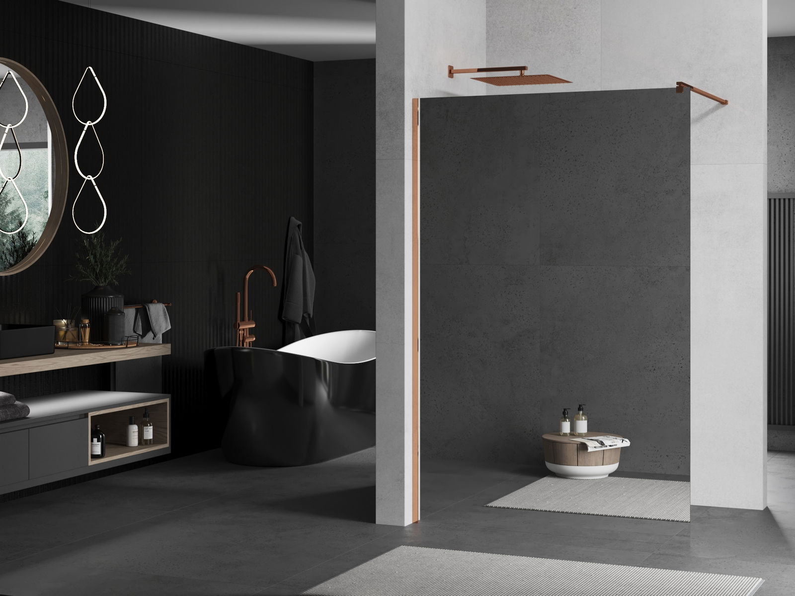 Mexen Kioto dušo sienelė Walk-in 80 x 200 cm, veidrodis 8 mm, rožinis auksas - 800-080-101-60-50