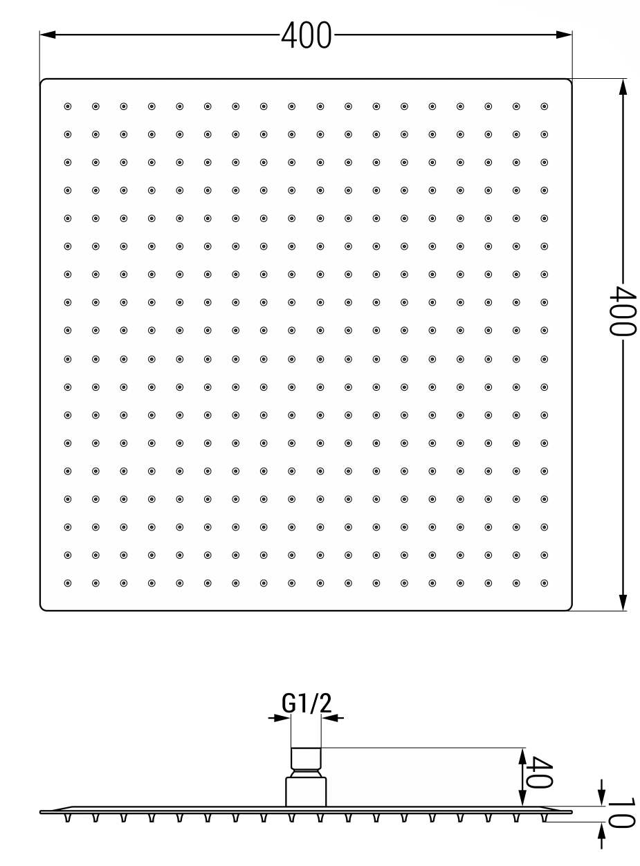 Lietaus skydas yra tik 8 mm storio, o tai suteikia ypač ploną išvaizdą. Plonas dizainas puikiai prisitaiko prie šiuolaikinio vonios interjero, sudarydamas lengvumo įspūdį. Puikus pasirinkimas minimalistinėms priemonėms.