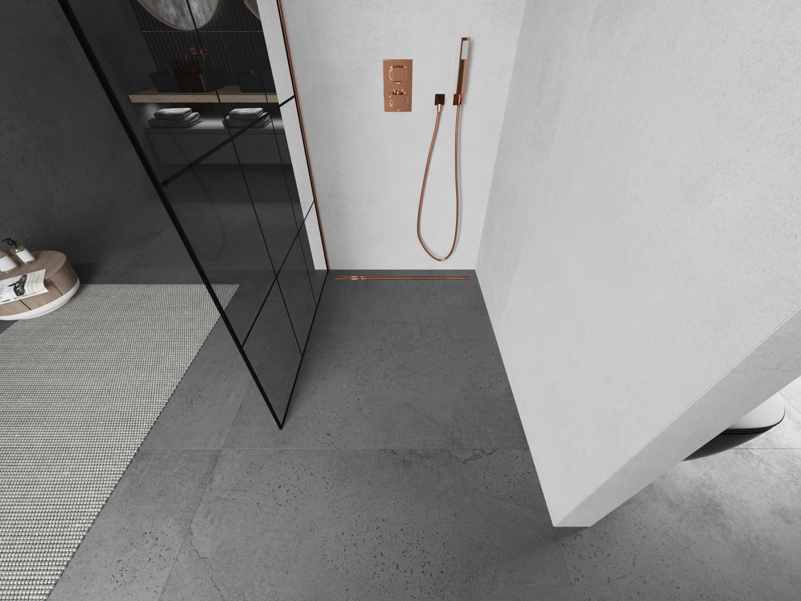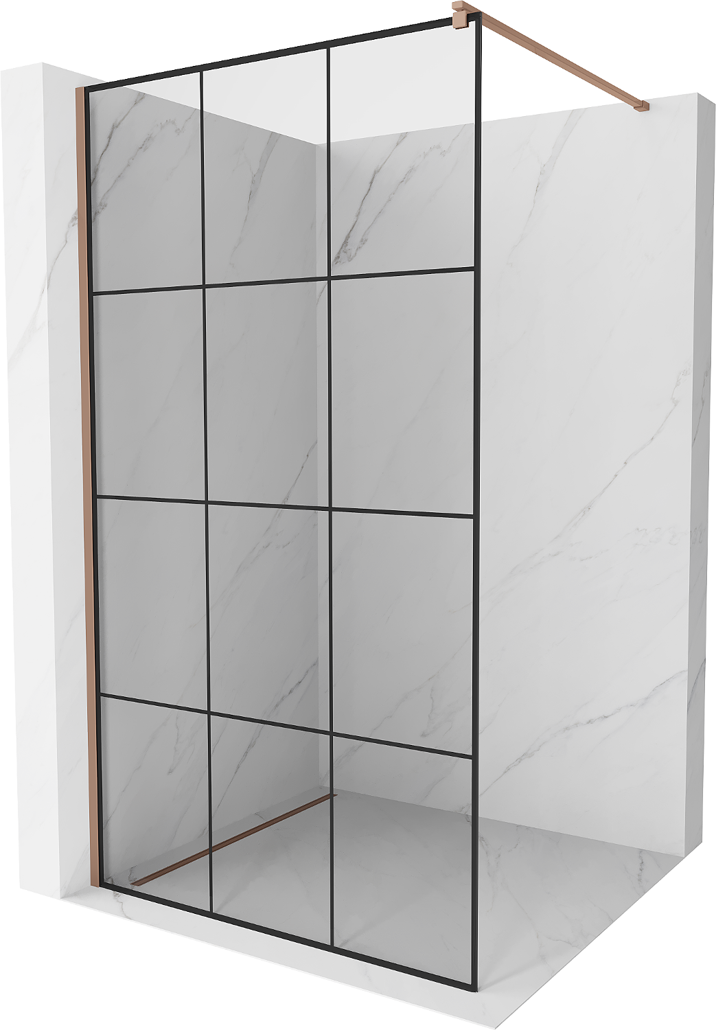 Mexen Kioto dušo pertvara Walk-in 100 x 200 cm, juodas tinklelis 8 mm, rausvas auksas - 800-100-101-60-77