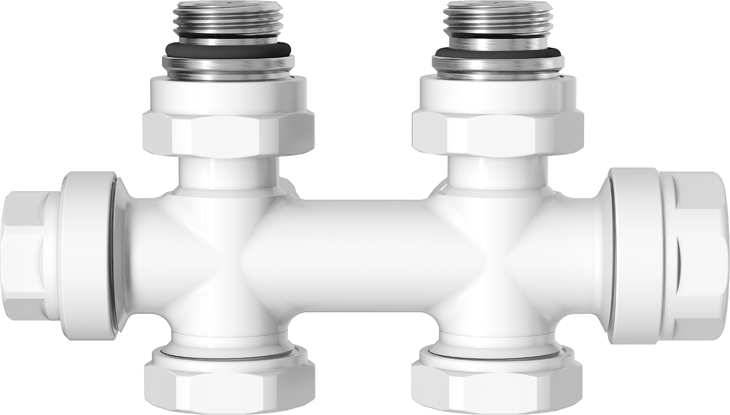 Komplekte yra jungtys daugiasluoksniams vamzdžiams 16x2 mm ir variniams vamzdžiams 15 mm