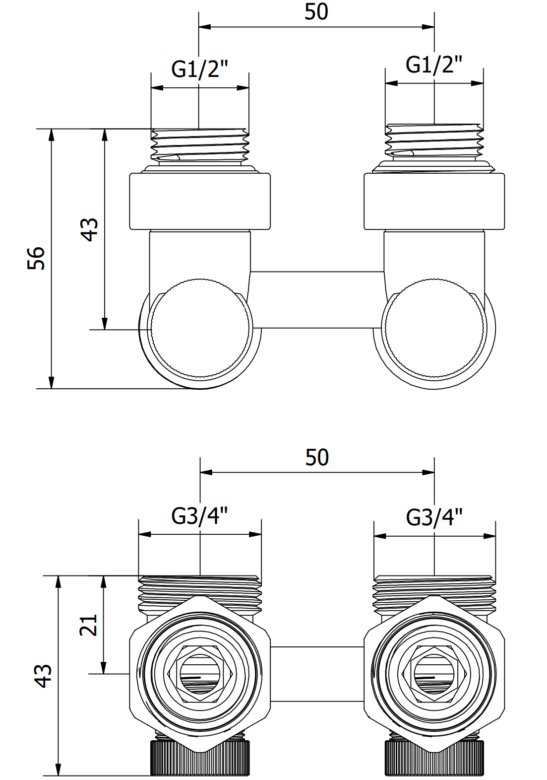Radiatoriaus vožtuvas su 1/2" ir 3/4" srieginiu prijungimu yra populiarus vožtuvo tipas, naudojamas šildymo sistemose. Šie sriegiai yra standartiniai daugelyje šildymo sistemų ir naudojami radiatoriams prijungti prie centrinio šildymo sistemos.