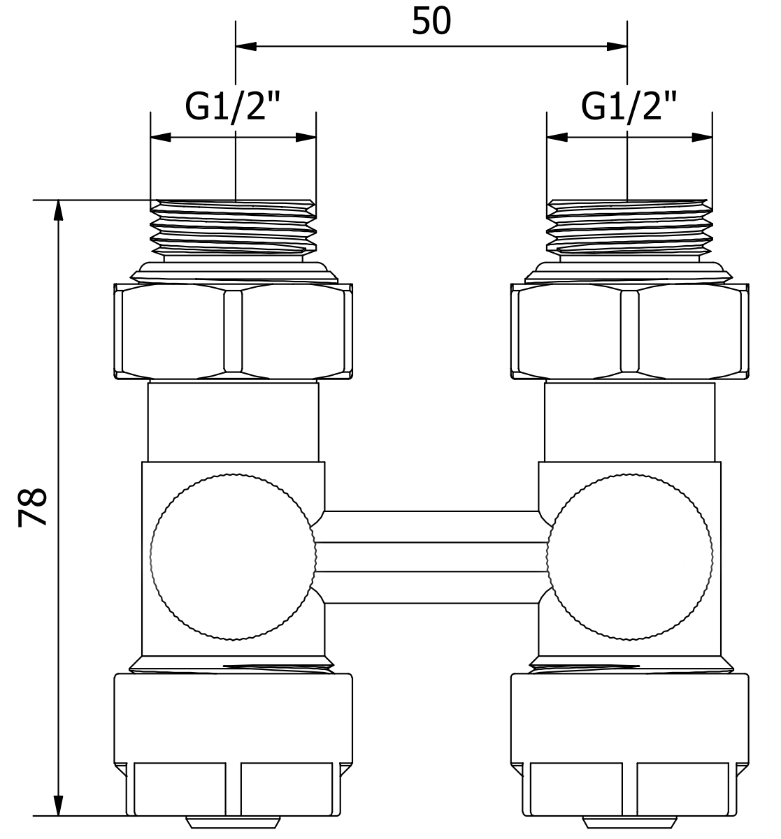 Apatinė jungtis su 50 mm atstumu