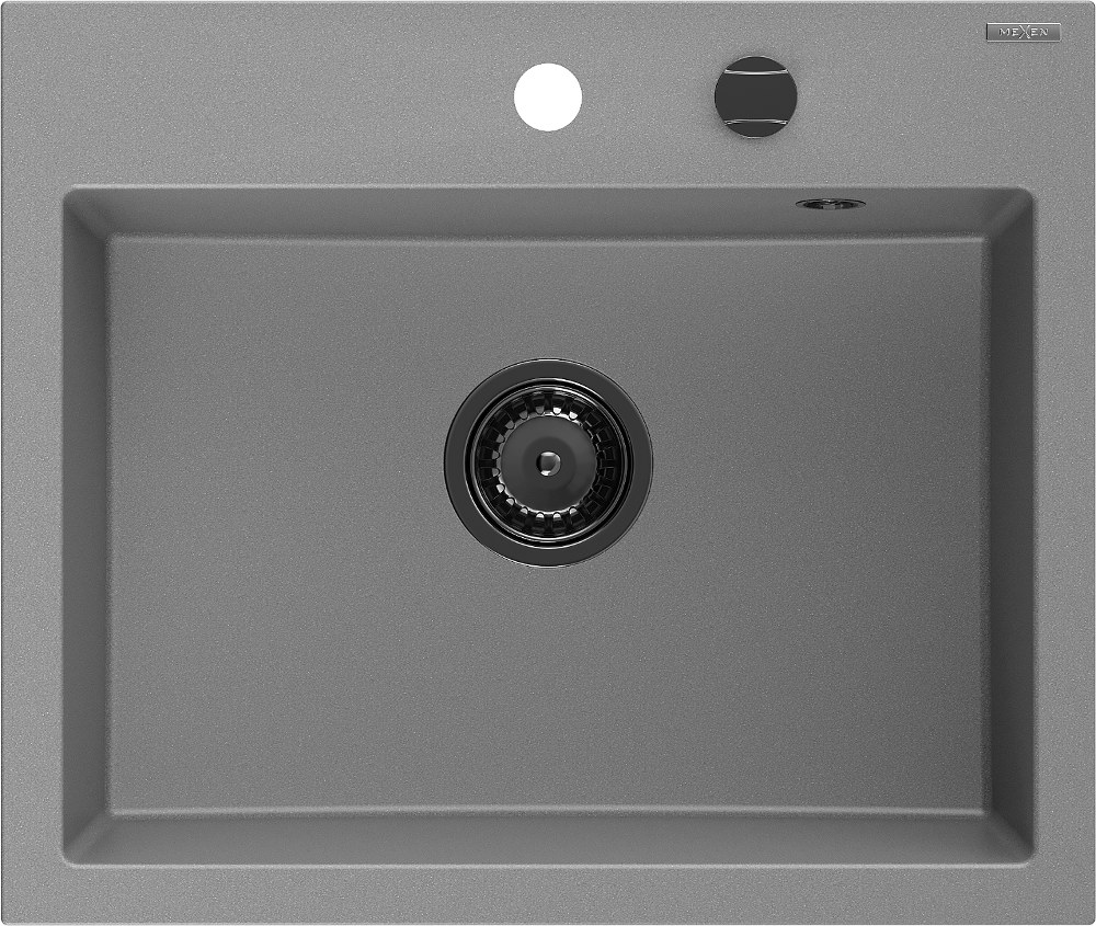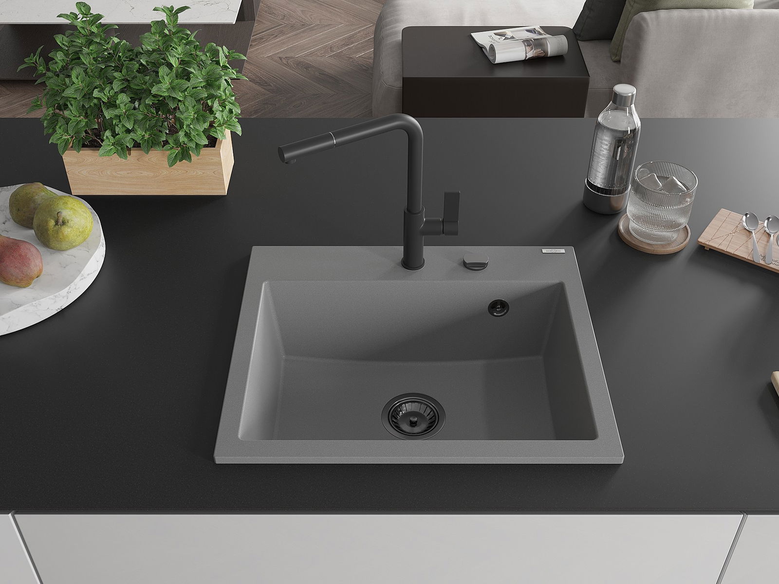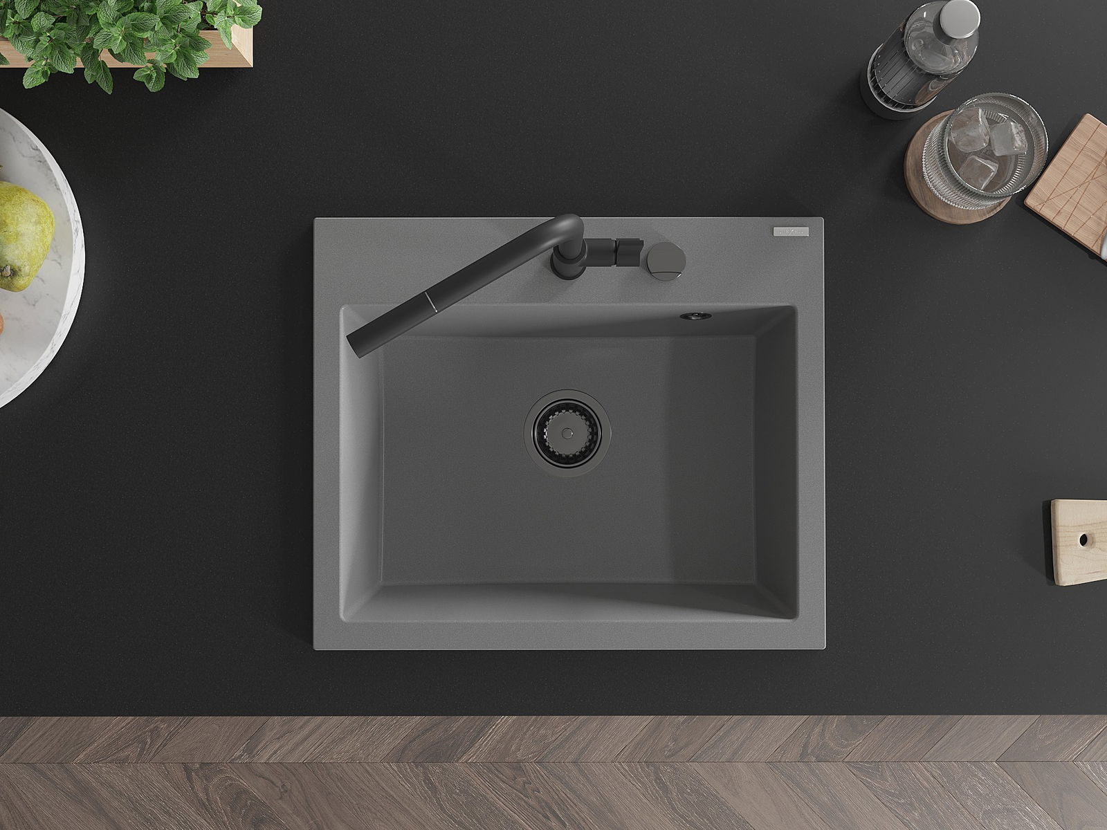 Mexen Oscar granitinė vienos kameros plautuvė 580 x 490 mm, pilka, juodas sifonas - 6519581000-71-B