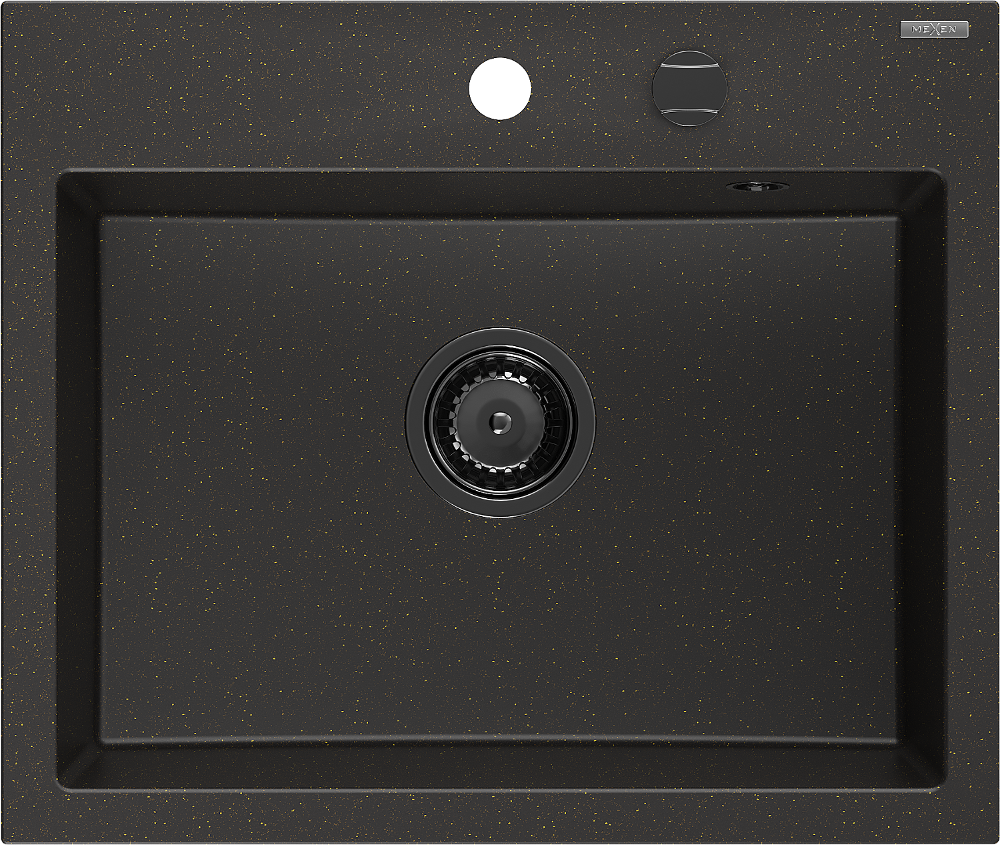 Mexen Oscar granito kriauklė vienos dalies 580 x 490 mm, juodas/auksinis metaliko, juodas sifonas - 6519581000-75-B