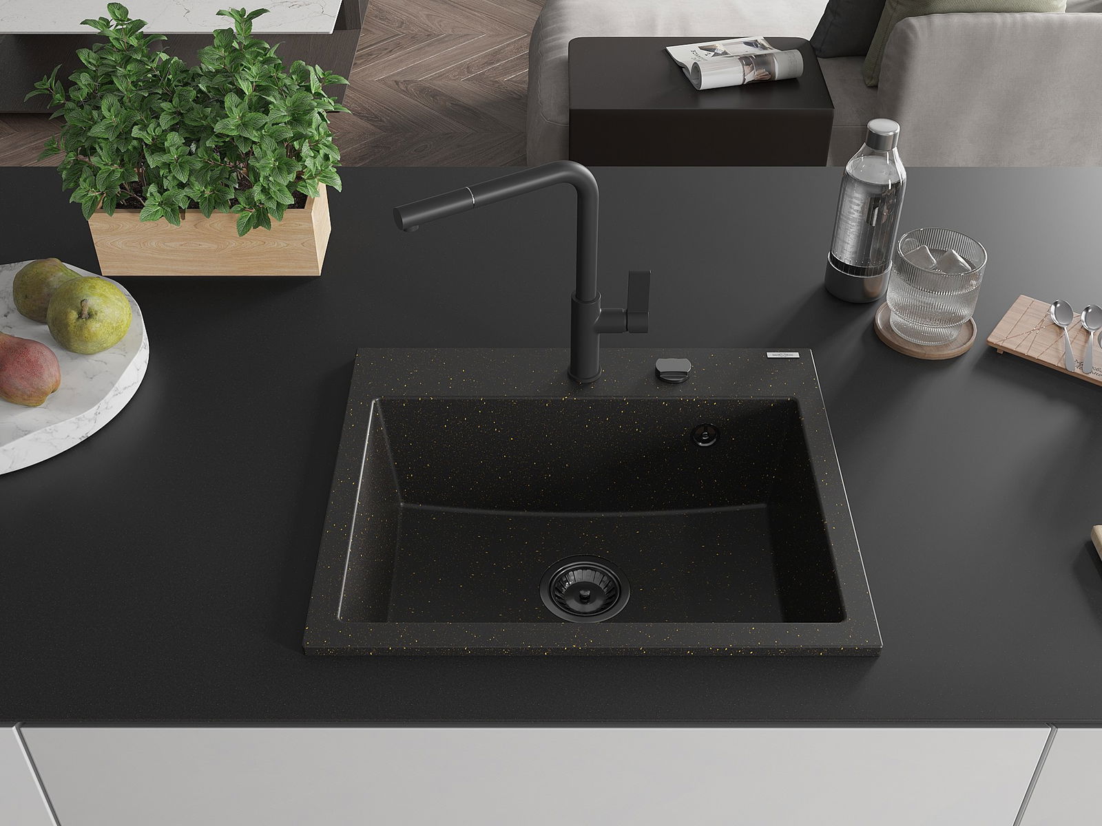 Kriauklės paviršius yra atsparūs dėmėms ir spalvos pasikeitimui, dėl kurio lengva valyti ir ilgą laiką išlaikyti savo spalvą. Estetinis ir praktiškai papildantis kiekvieną virtuvę.