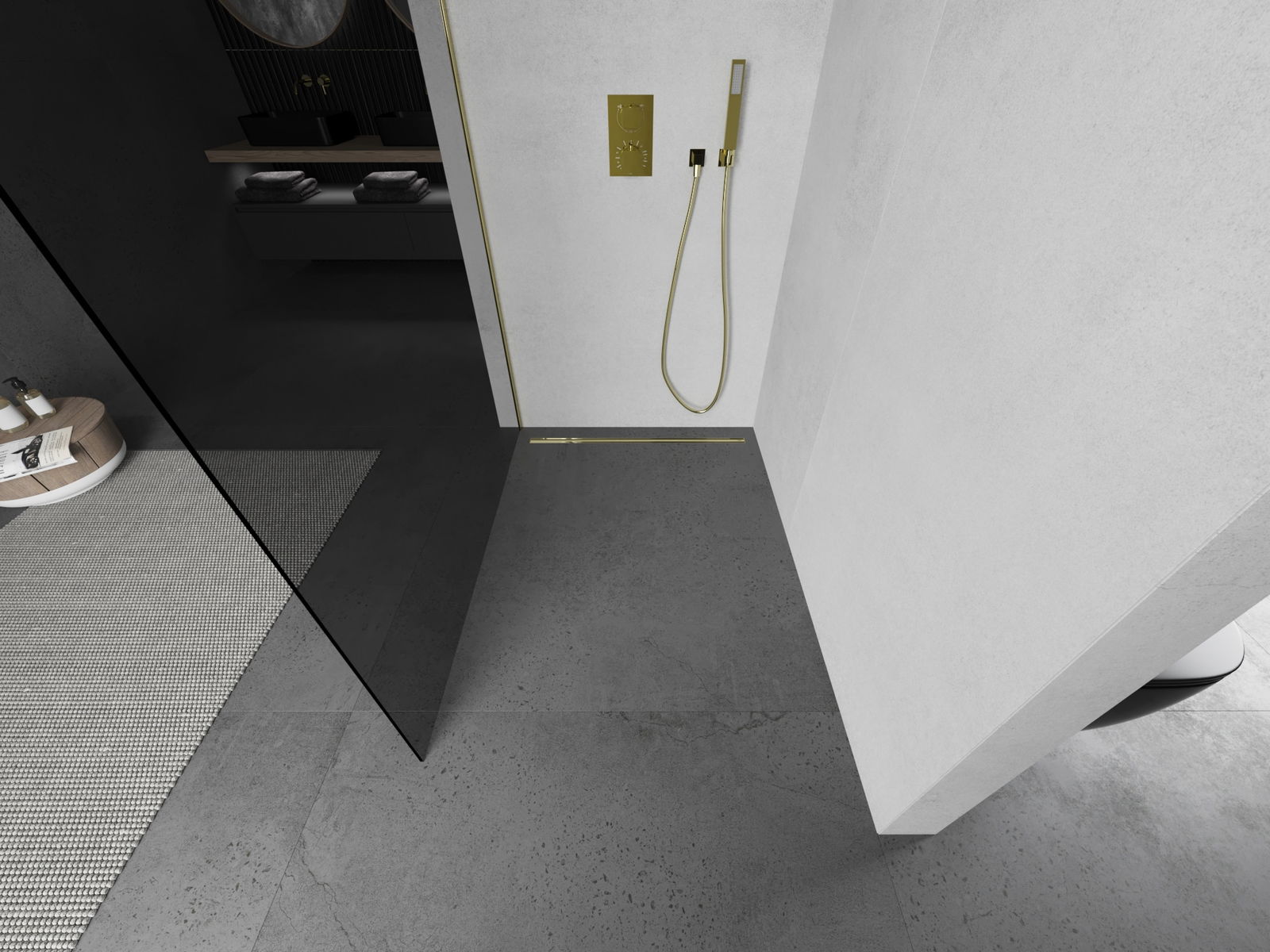 Mexen Kioto dušo sienelė Walk-in 140 x 200 cm, grafitas 8 mm, auksinė - 800-140-101-50-40