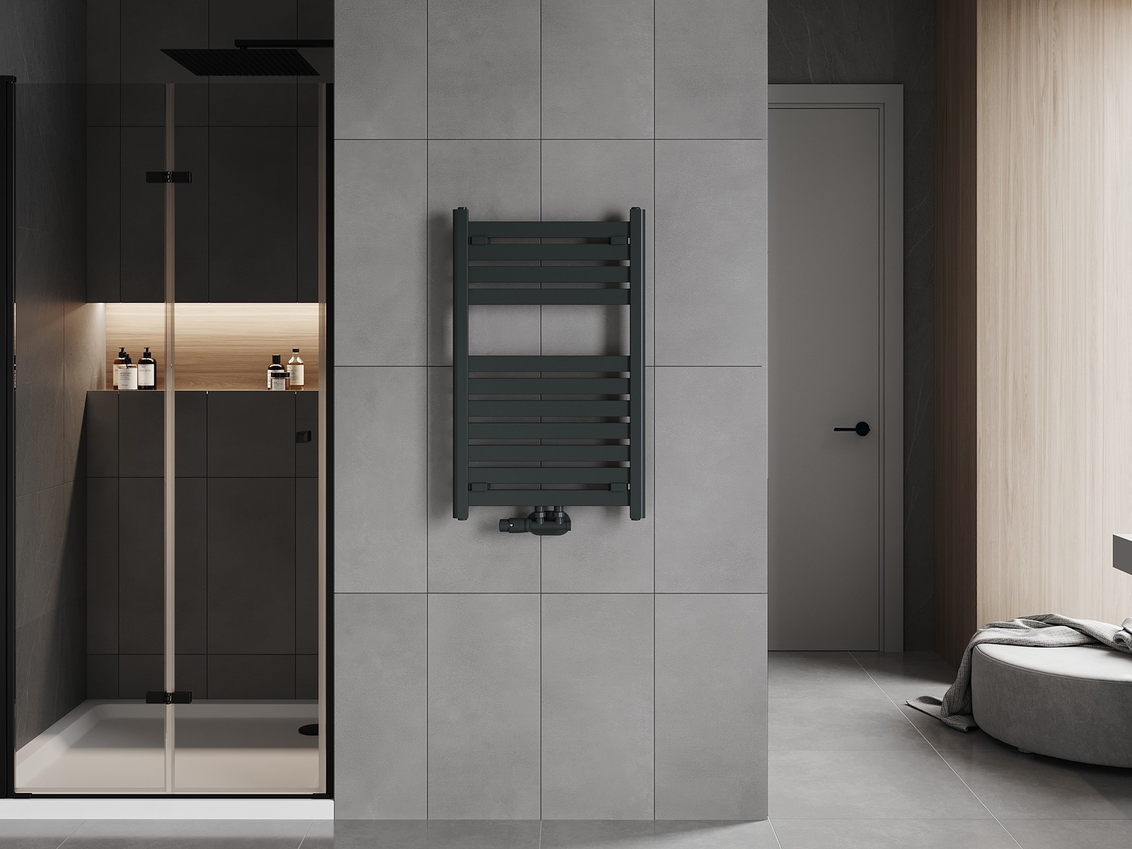 Vonios radiatorius Mexen Uran yra puikus pasirinkimas tiems, kurie vertina funkcionalumą ir elegantišką dizainą. Jo matmenys - 800 x 500 mm - leidžia efektyviai šildyti, pasiekiant 364 W galią esant 75/65/20 °C. Pagamintas iš plieno ir juodos, nuo korozijos apsaugančios dažų dangos, jis yra patvarus ir stilingas. Darbinė temperatūra siekia 95 °C, o maksimalus darbinis slėgis yra 0,4 Mpa. Radiatorius turi įvairias jungčių galimybes ir kaitinimo elemento montavimo opciją. Komplekte yra laikikliai, montavimo komplektas, dangteliai ir ventiliatorius.