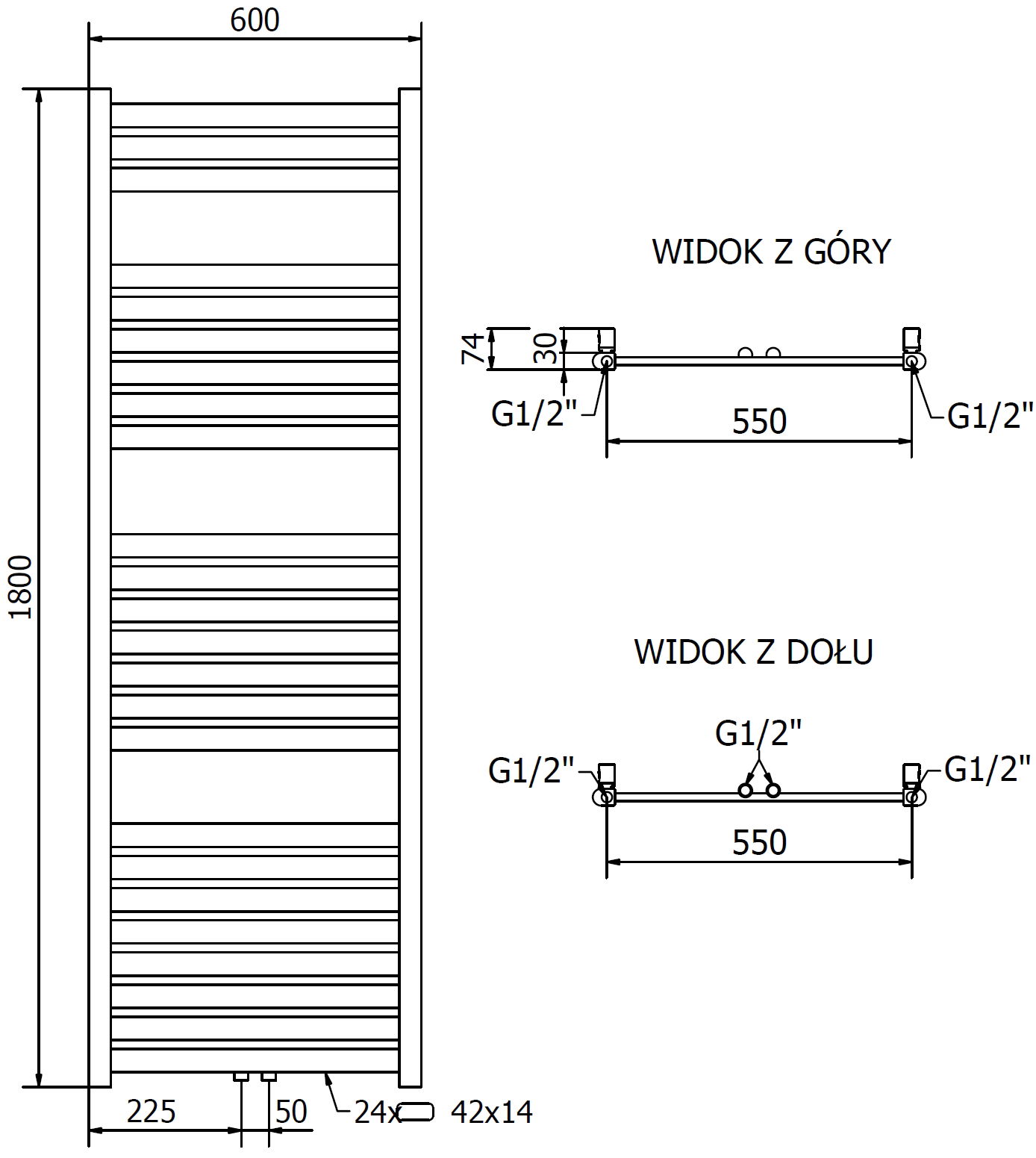 - 4xG ½″ iš viršaus ir apačios iš dešinės arba kairės pusės