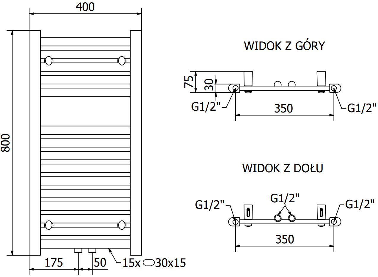 - 4xG ½” iš viršaus ir apačios iš dešinės arba kairės pusės