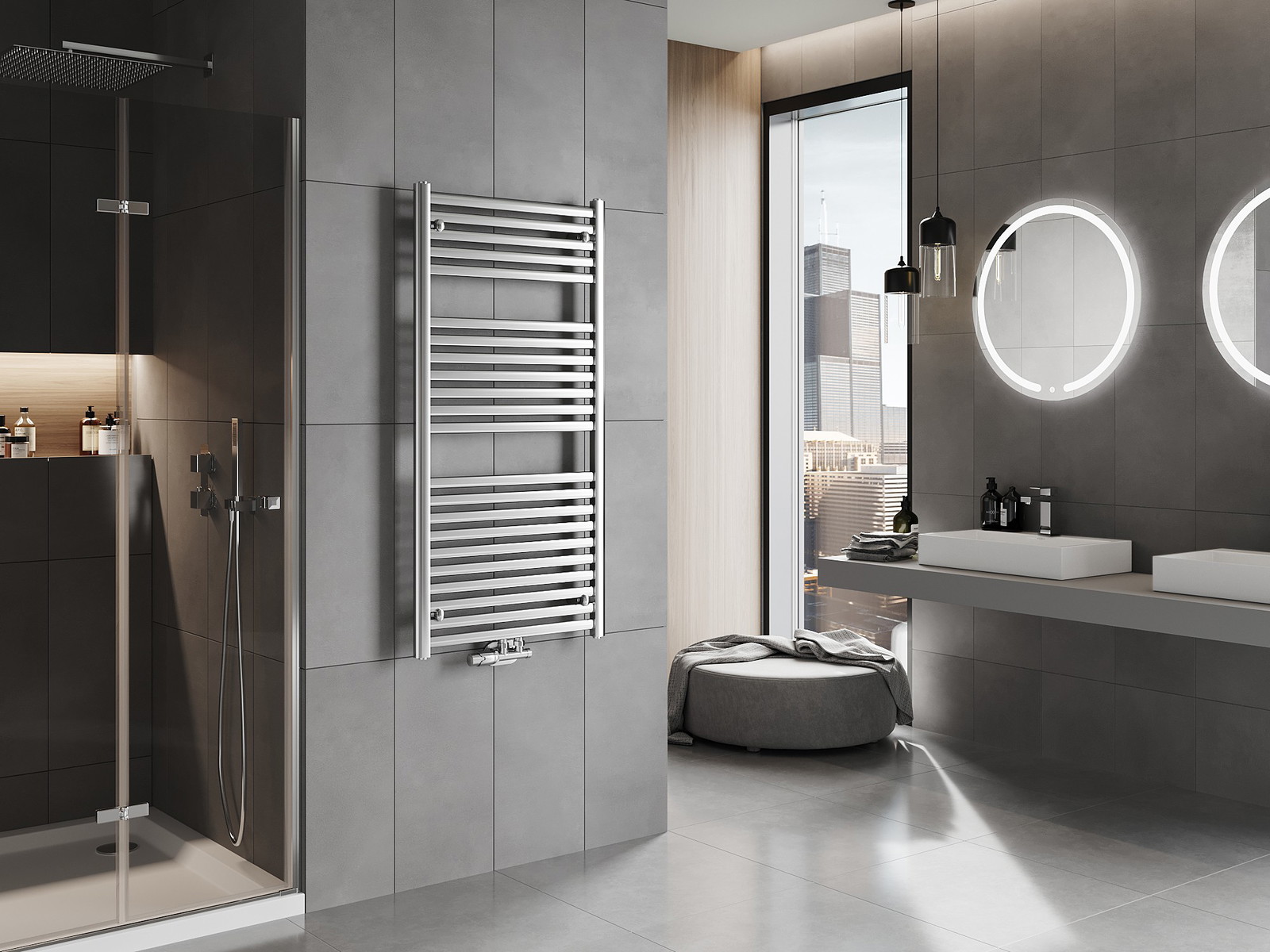 Vonios kambario radiatorius Mexen Hades dydžio 1200 x 600 mm yra puikus moderniško dizaino ir aukšto efektyvumo derinys. Pagamintas iš chromuoto plieno, siūlo 527 W šiluminę galią esant 75/65/20 °C temperatūrai ir maksimalią darbinę temperatūrą iki 95 °C. Produktas aprūpintas įvairiais prijungimais, leidžiančiais lanksčią instaliaciją, ir aukštos kokybės danga atsparia korozijai. Komplekte yra pakaba, montavimo komplektas, užsukamoji dalis ir atvanginimas.