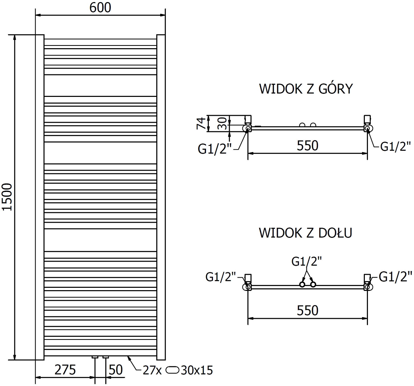 - 4xG ½″ iš viršaus ir apačios iš dešinės arba kairės pusės