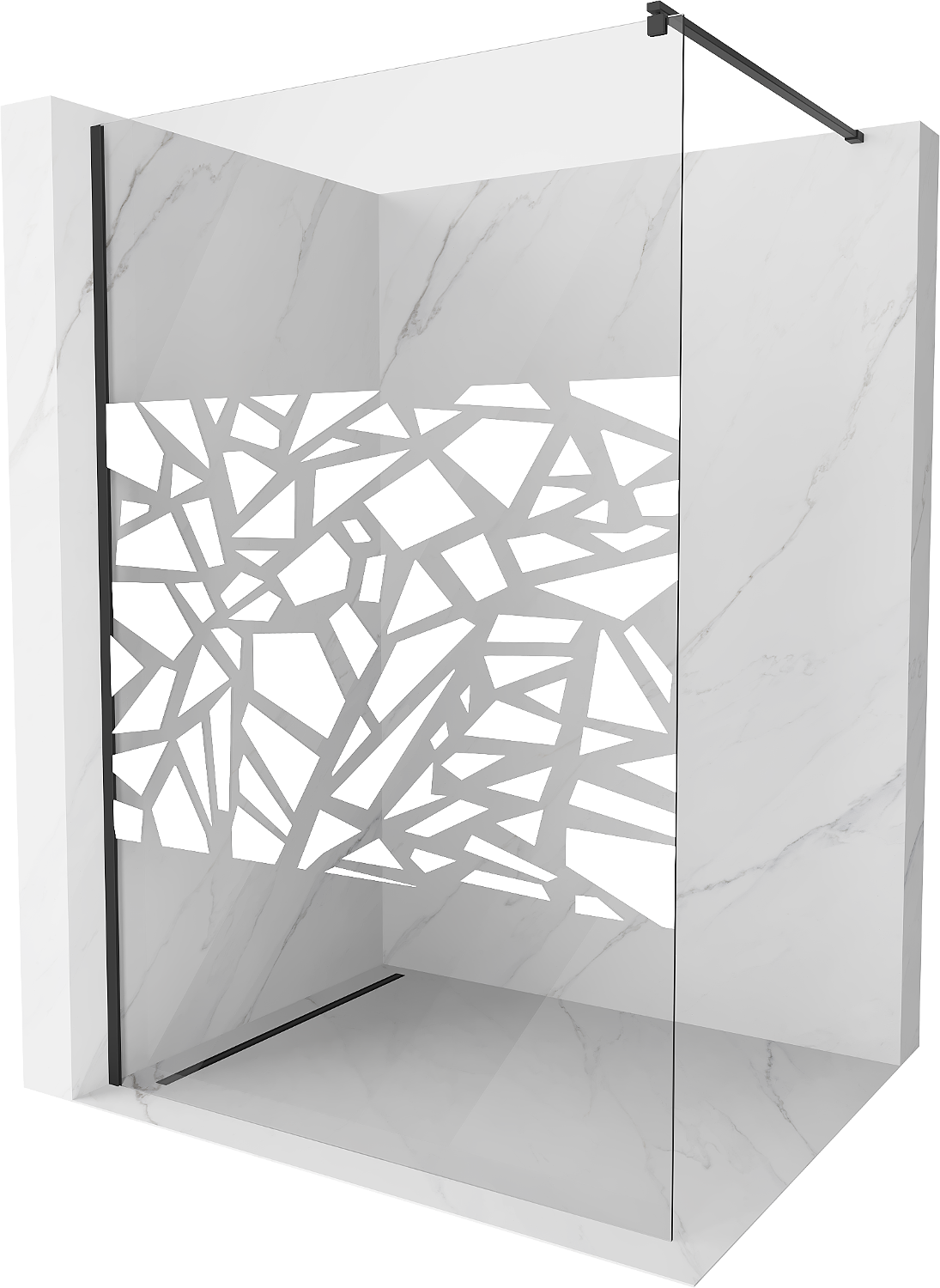 Mexen Kioto dušo siena Walk-in 110 x 200 cm, baltas raštas 8 mm, juoda - 800-110-101-70-85