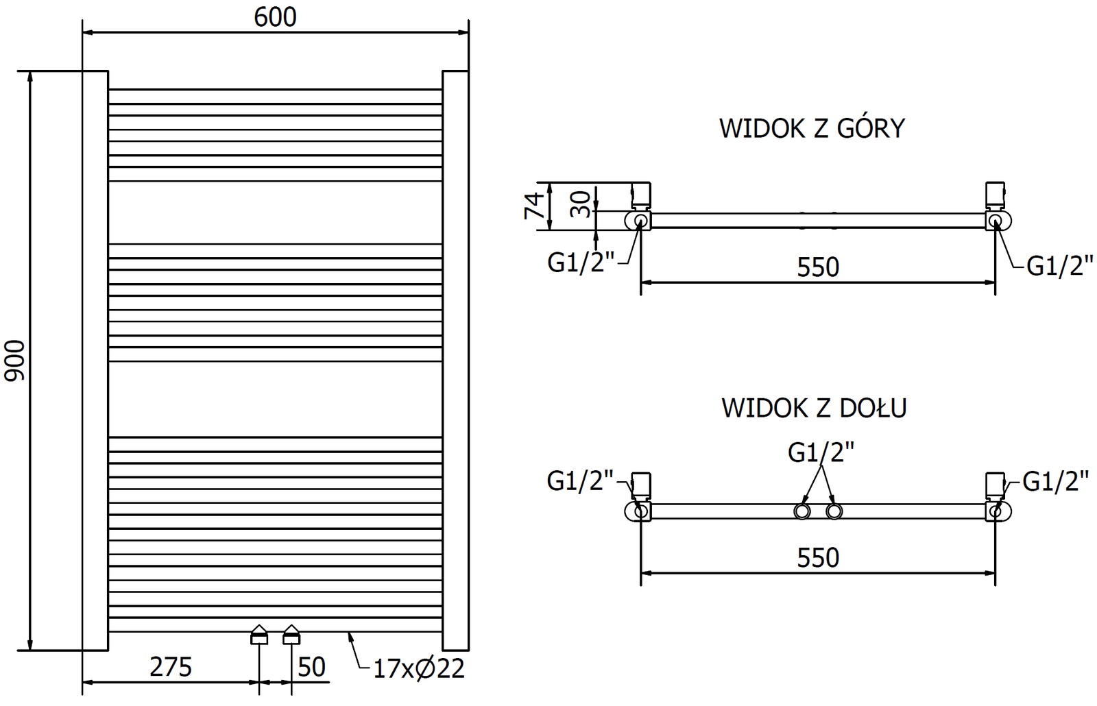 Mexen Mars vonios radiatorių 900 x 600 mm, 340 W, auksinis - W110-0900-600-00-50
