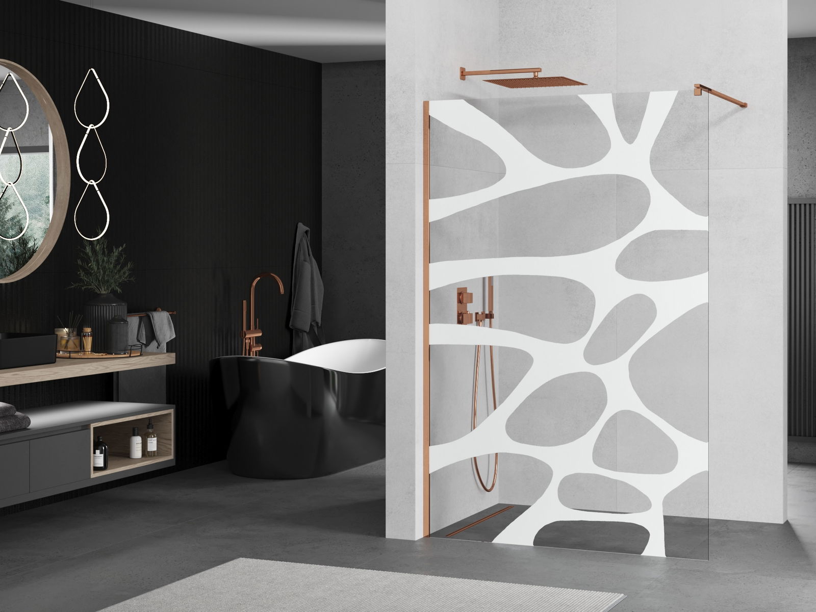 Mexen Kioto dušo sienelė Walk-in 100 x 200 cm, balta banga 8 mm, rožinis auksas - 800-100-101-60-97