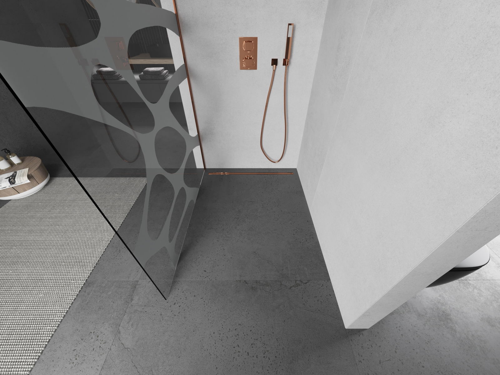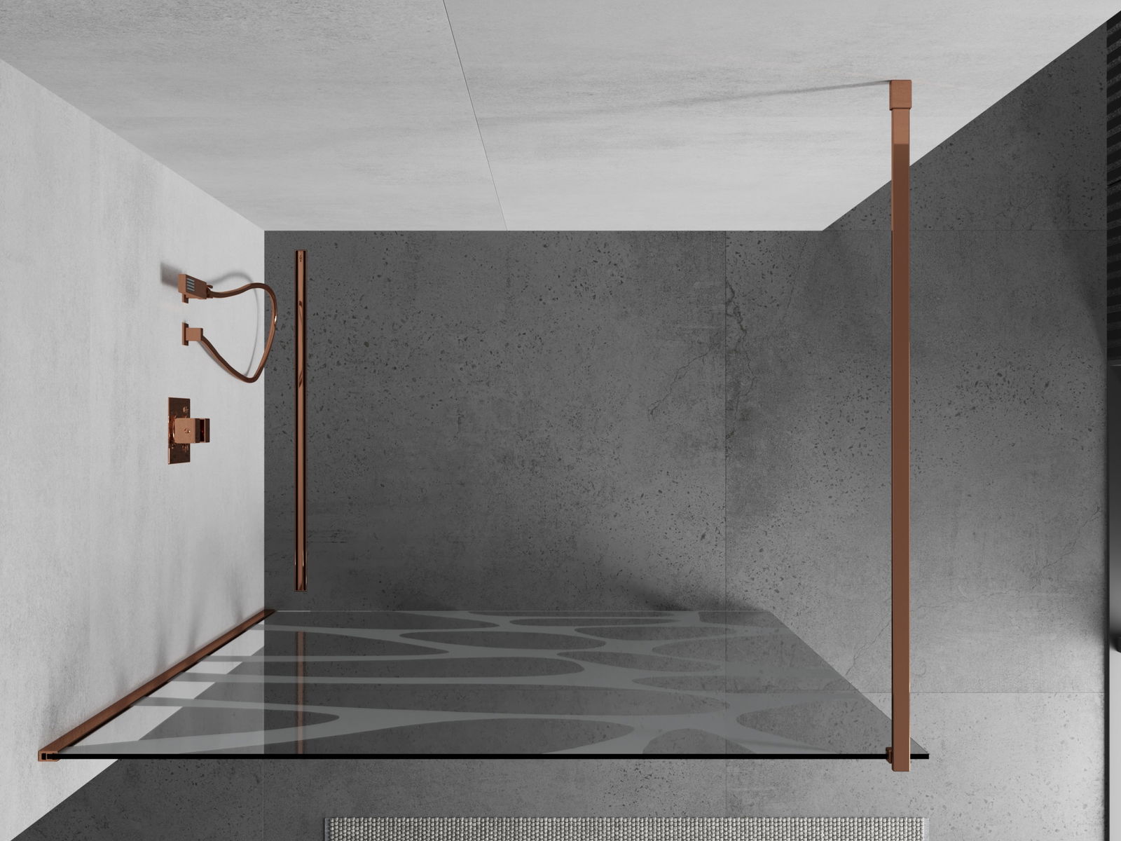 Mexen Kioto dušo siena Walk-in 130 x 200 cm, balta banga 8 mm, rožinis auksas - 800-130-101-60-97