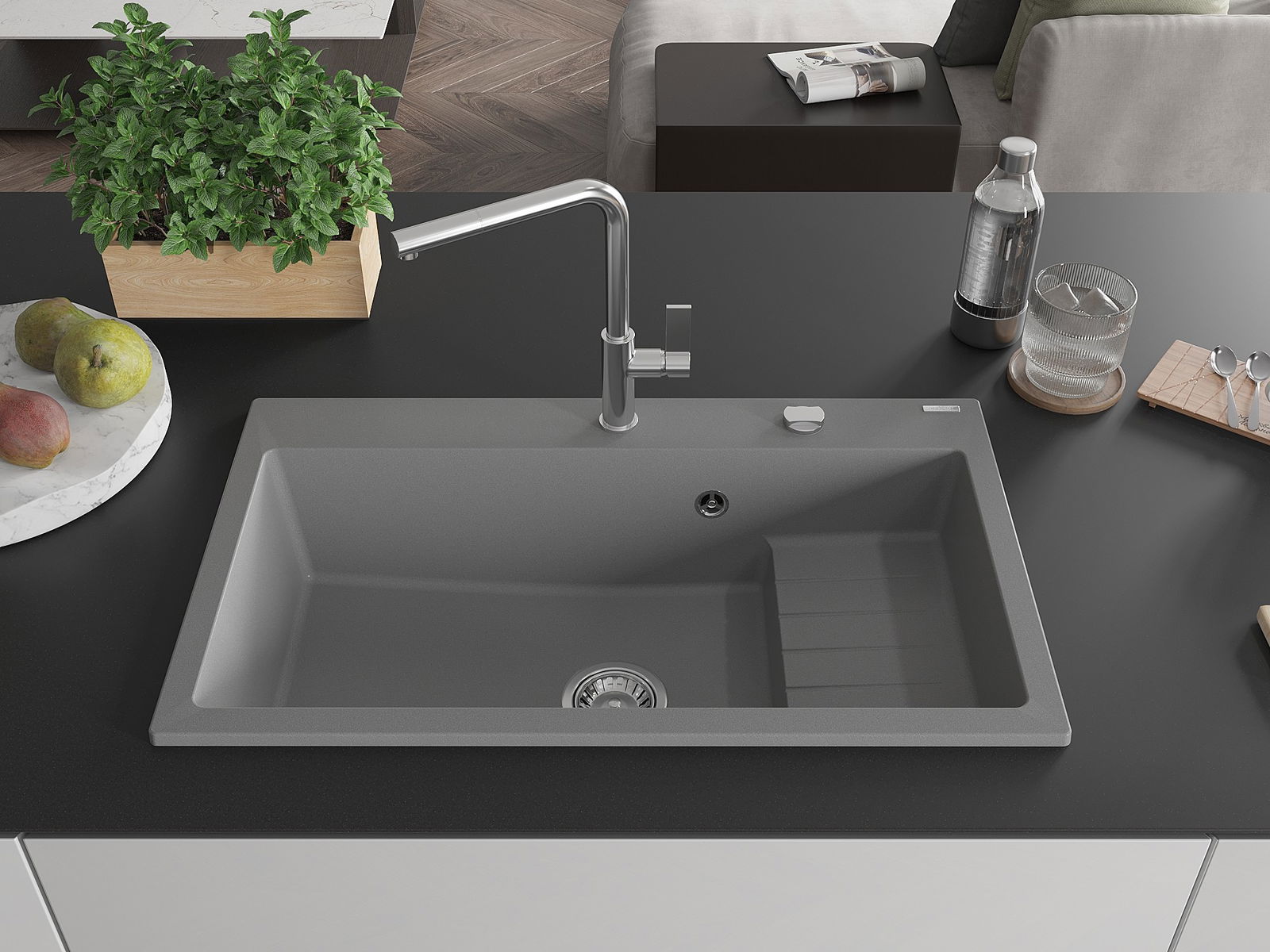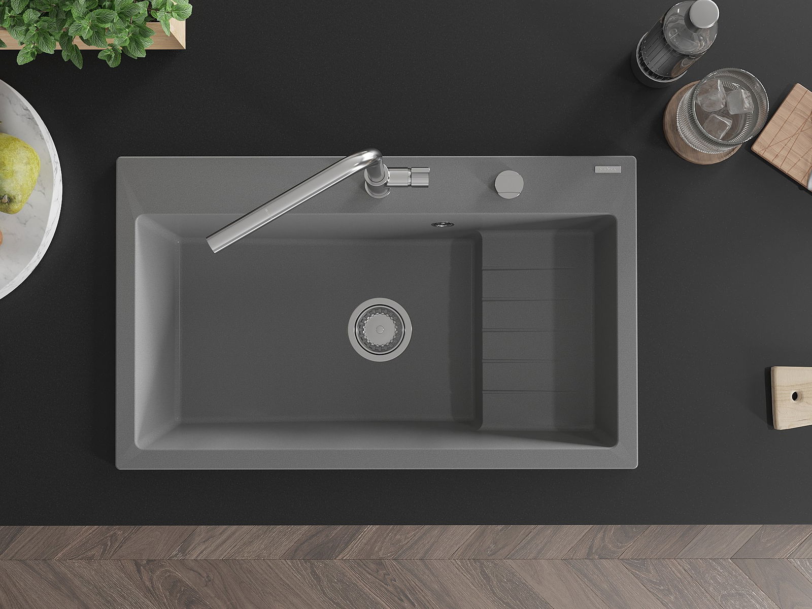 Mexen Omar granitinis virtuvės kriauklė 1 kamerų 800 x 480 mm, pilka, chromuotas sifonas - 6520801005-71