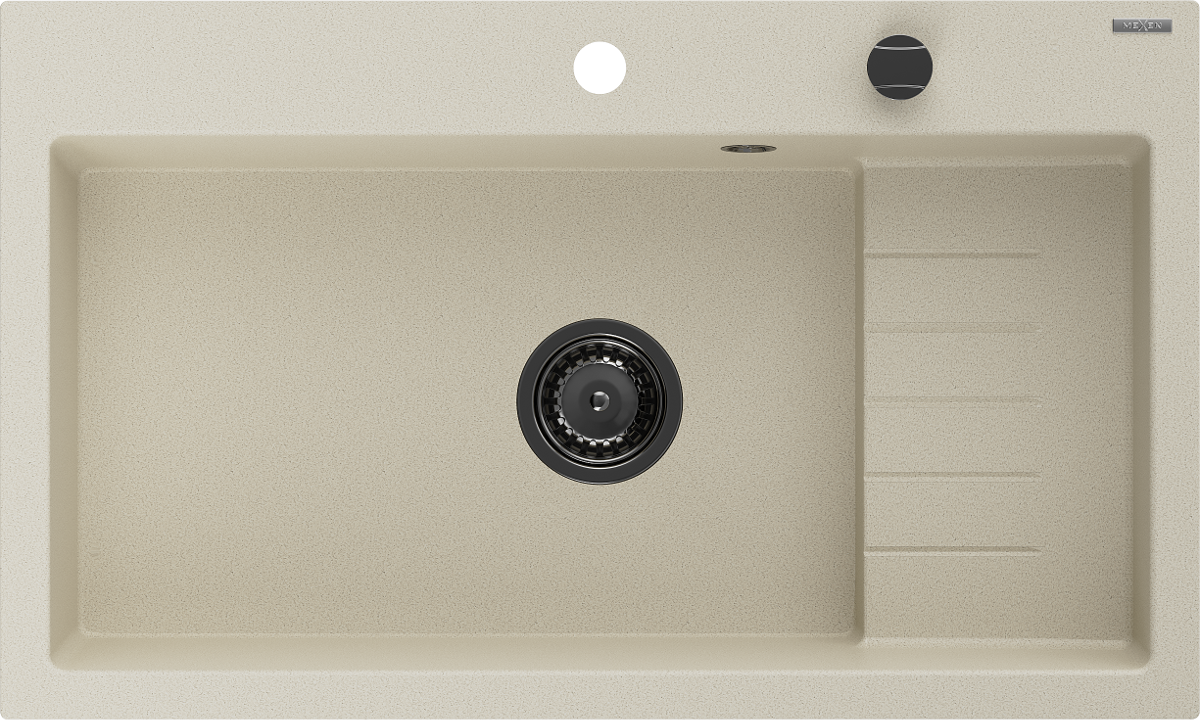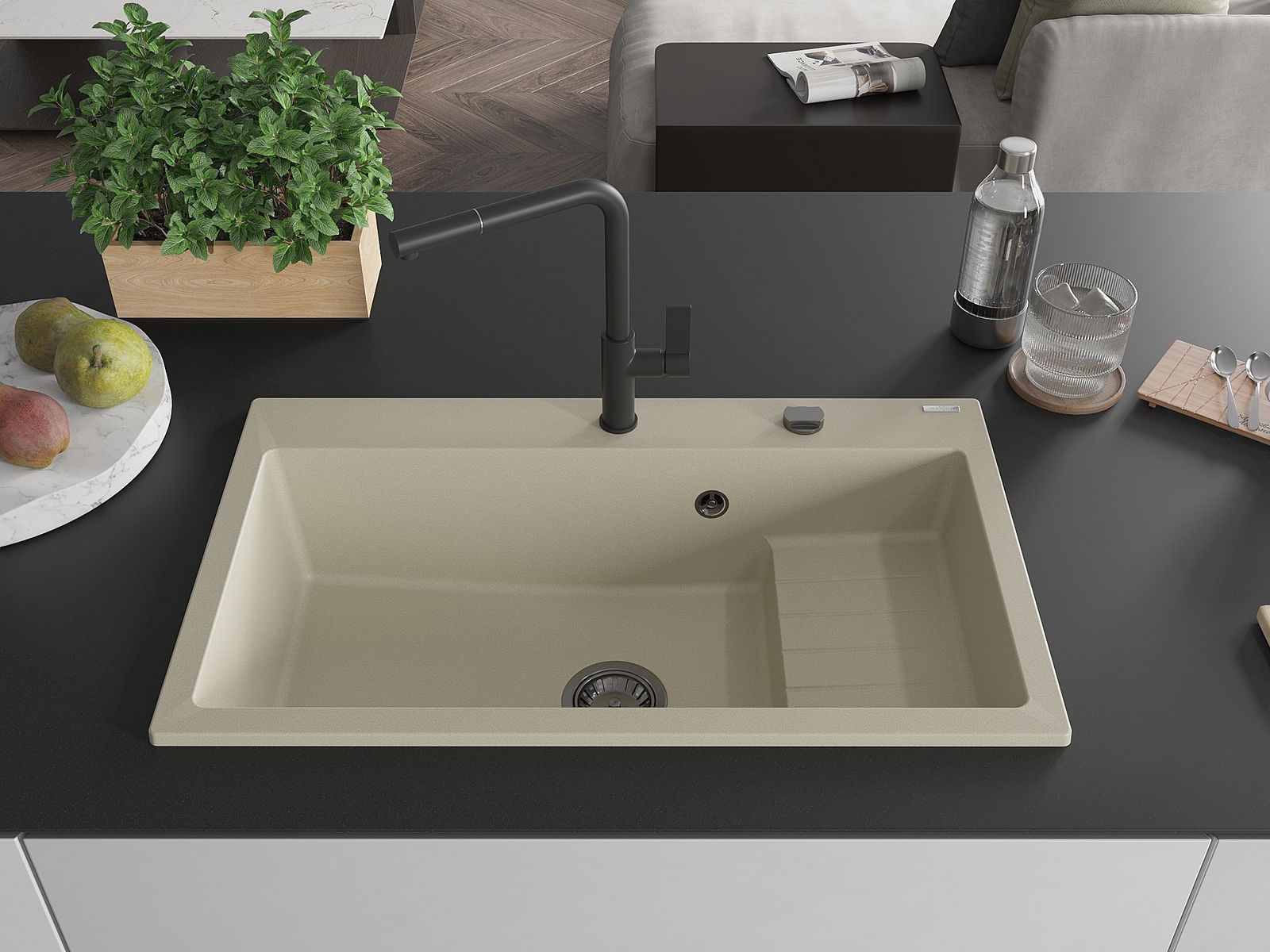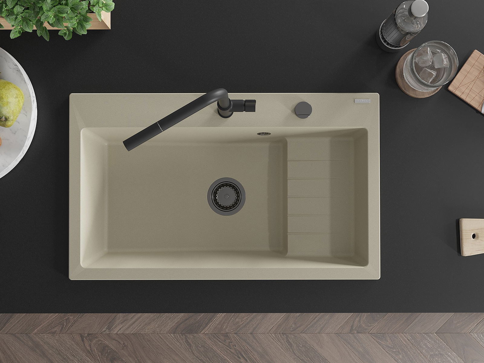 Mexen Omar granitinis vienos kameros kriauklė 800 x 480 mm, smėlio spalvos, juodas sifonas - 6520801005-69-B