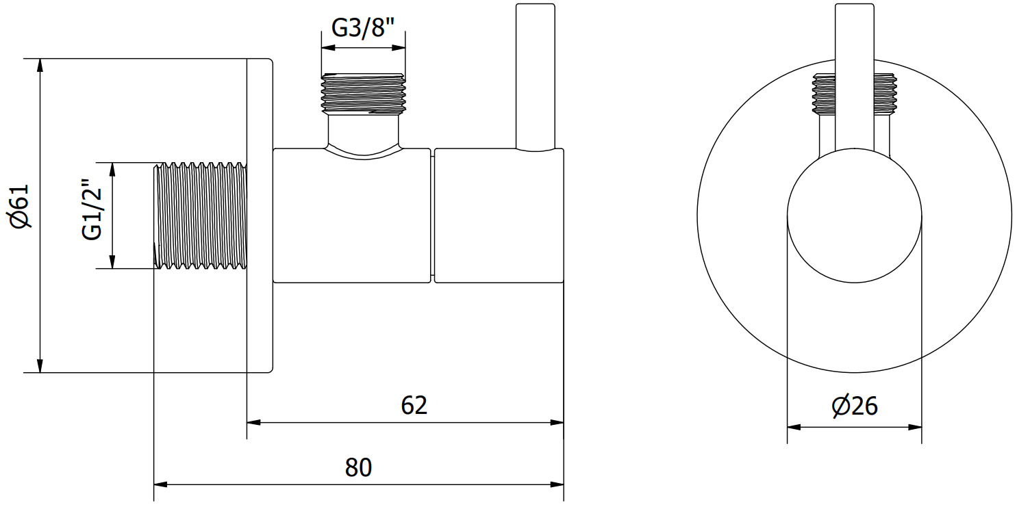Jungties skersmuo: G 1/2" ir G 3/8"