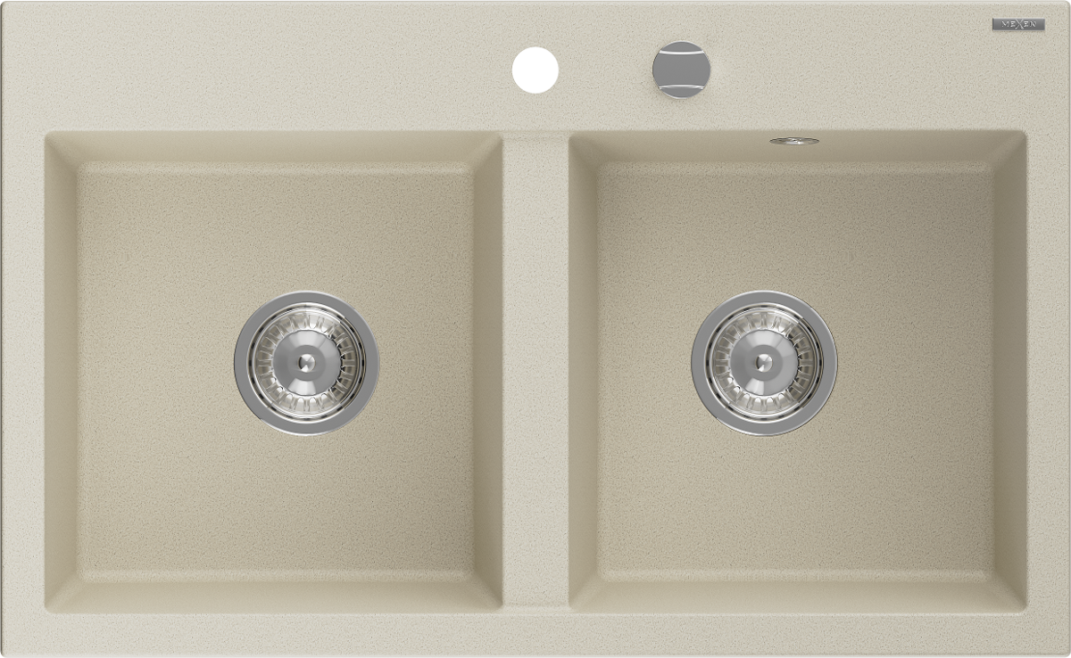 Mexen Hektor dviejų kamerų granitinė plautuvė 800 x 480 mm, smėlio spalvos, chromo sifonas - 6521802000-69