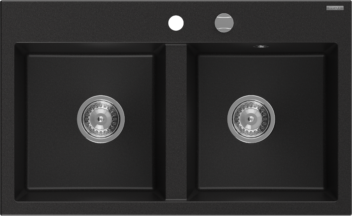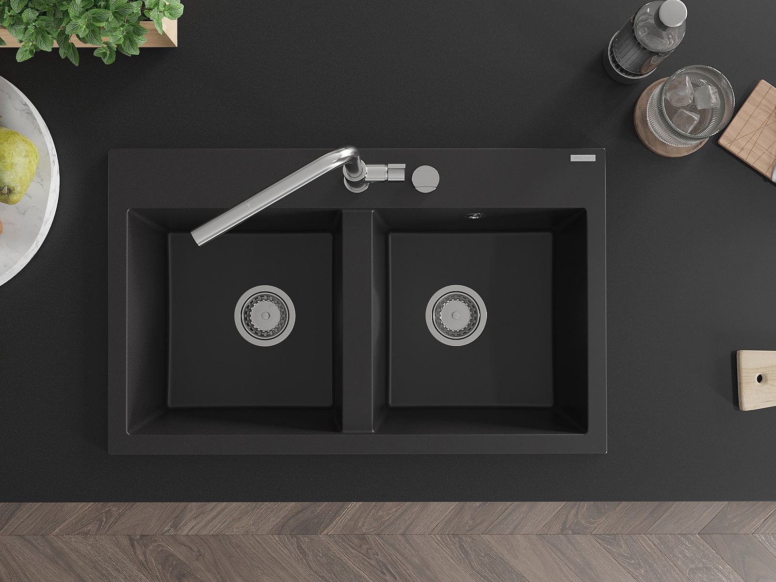 Mexen Hektor granitinė dviejų skyrių kriauklė 800 x 480 mm, juoda, sifonas chrom - 6521802000-77