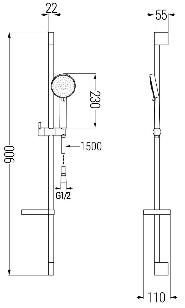 Atstumas nuo sienos: 110 mm