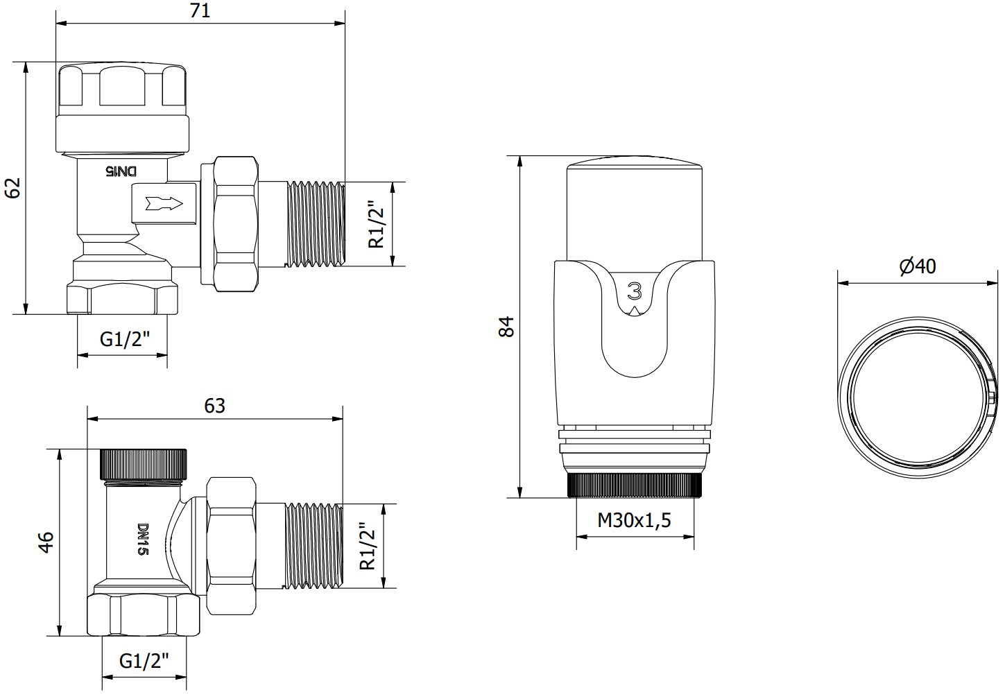 Komplekte yra maitinimo ir išjungimo radiatorinis vožtuvas