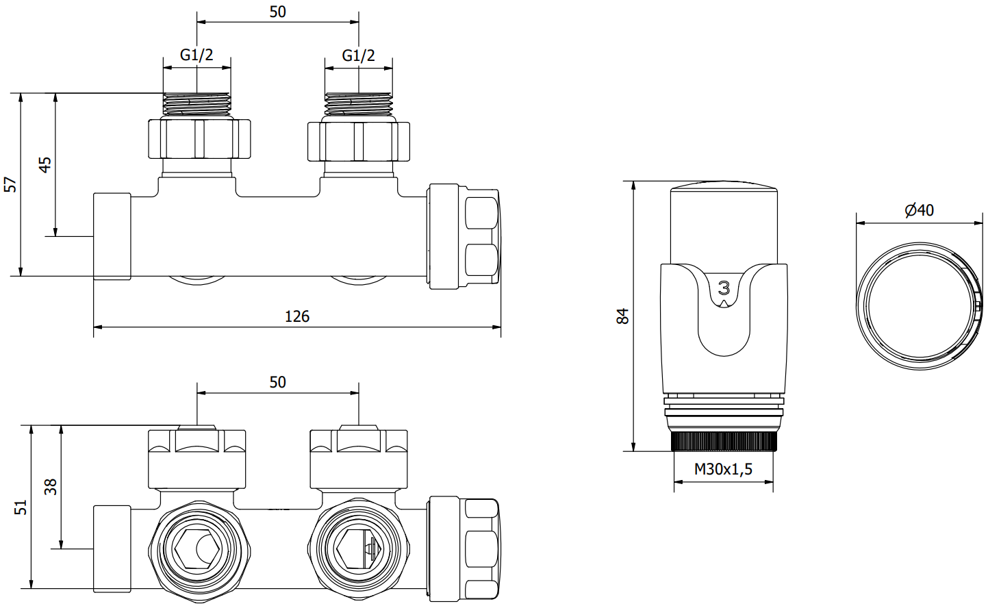 Radiatoriaus tiekimo ir atjungimo vožtuvas
