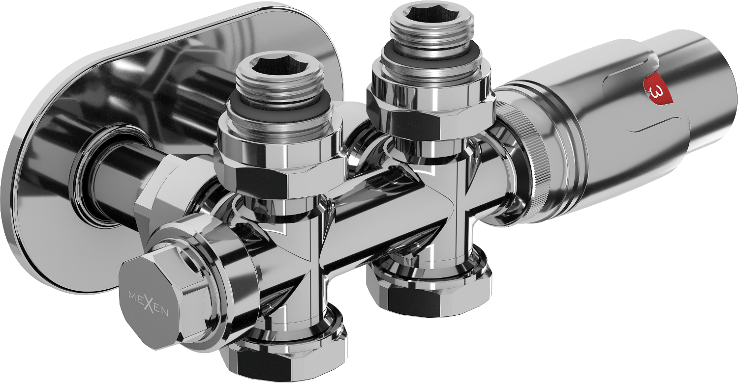 Universali tiekimo ir uždarymo vožtuvas kampiniams ir tiesiems prijungimams, nesvarbu, ar prijungimas yra sienoje, ar grindyse