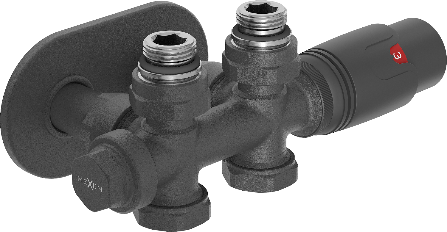 Universalus tiekimo ir uždarymo vožtuvas kampiniams ir tiesiems junginiams, nepriklausomai nuo to, ar jungtis yra sienoje, ar grindyse