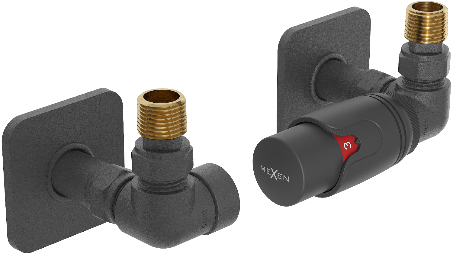 Komplektą sudaro tiekimo ir uždarymo radiatoriaus vožtuvas