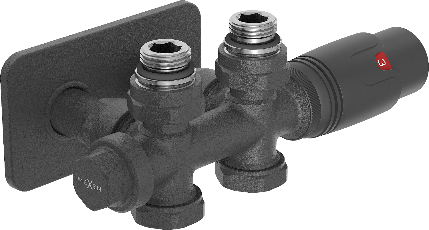 Universalus vožtuvas tiekimo ir atjungimo jungtims kampinėms ir tiesioms, nepriklausomai nuo to, ar jungtis yra sienoje ar grindyse
