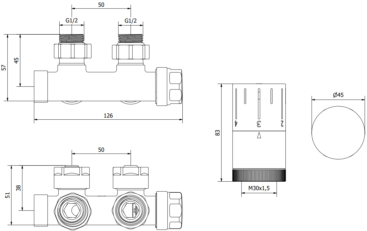 Radiatoriaus maitinimo ir uždarymo vožtuvas